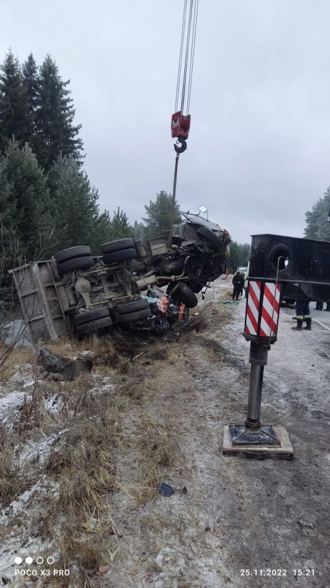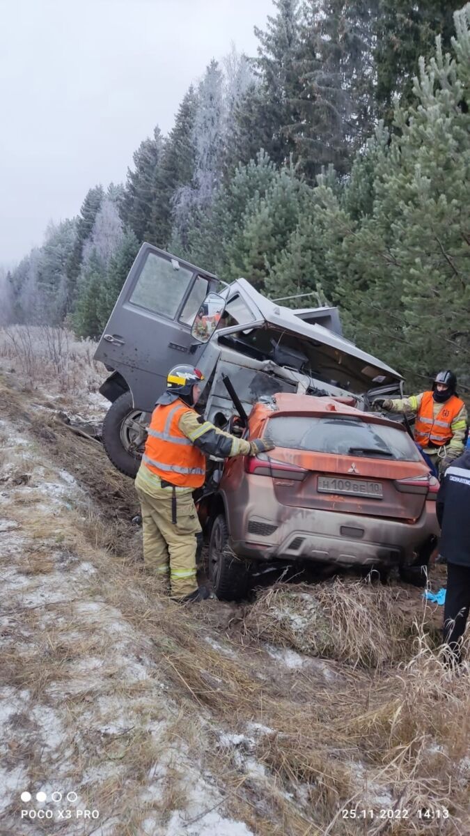 Смертельное ДТП произошло вчера, 25 ноября, днем на 25-м километре трассы «Петрозаводск — Суоярви», неподалеку от деревни Виданы. Сообщение на пульт пожарных Пряжинского района поступило в 13:38. Об этом говорится в паблике спасателей.
