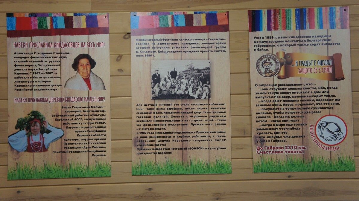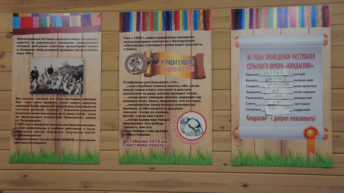 Один год организовали фестиваль – презентацию территории. На него приезжали из Архангельской области, где проходит близкое киндасовцам по духу мероприятие – районный праздник «Малинова Уйма». Он посвящен герою юмористических сказок Степана Писахова Сене Малине. Тогда же карельскую деревню посетила веселая делегация из города Пошехонье в Ярославской области. Название на слуху у многих благодаря знаменитому пошехонскому сыру, однако пошехонцы прославились не только благодаря ему. О жителях города издавна ходят анекдоты, они так и называются «Анекдоты древних пошехонцев». Впервые забавные истории о незадачливых жителях этой местности опубликовали в 1798-м году.