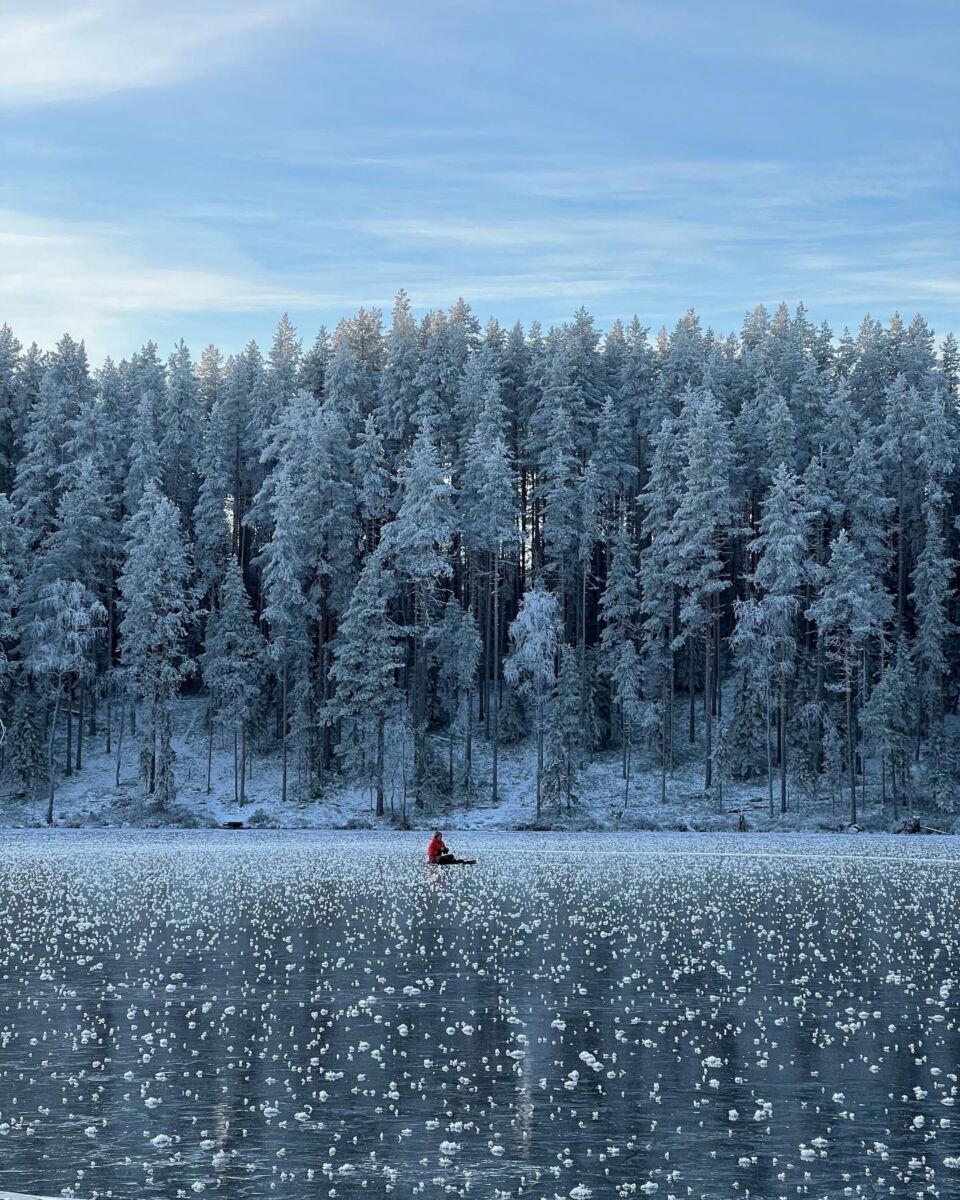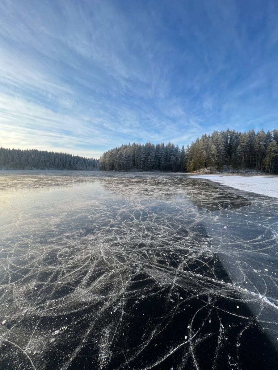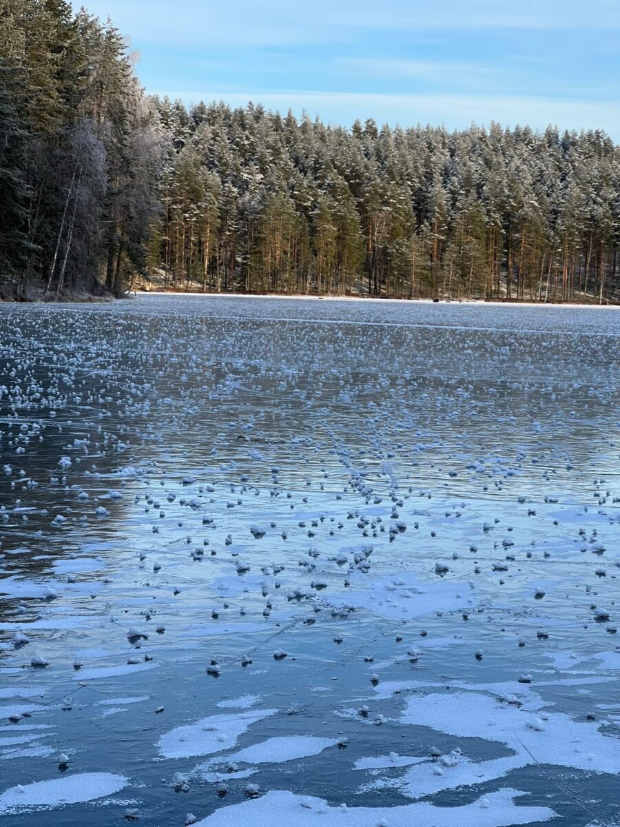 По прогнозу была морозная погода -10 °C и мы решили поехать на одно озеро покататься на коньках. У всех это была давняя мечта — вот так погонять по озеру. Озеро не большое, и лед уже был 10 см примерно. Но в начале и ходить было страшно. Постепенно поняв, что лед крепкий и не трещит, мы освоились. Мы все любители, у нас компания тех кто даже зимой и осенью в выходные любит выбираться на природу, — рассказал Александр.