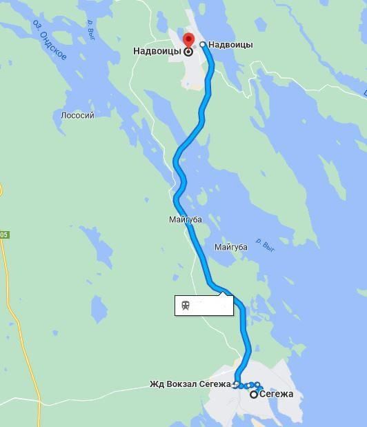 – Сегежа — Надвоицы, отправление в 13.00, прибытие в 13.17;