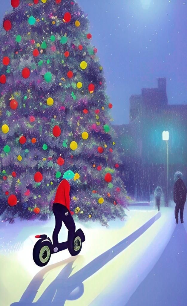 Глава Петрозаводска поделился своими работами, созданными с помощью нейросети – на картинах много снега, новогодние ели, а горожане передвигаются на велосипедах и электросамокатах даже по сугробам.
