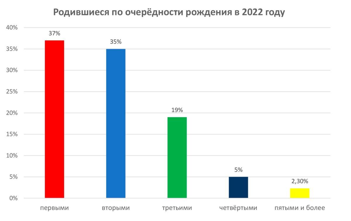 37% родившихся в Карелии детей в 2022 году стали первенцами, 35% — вторыми, 19% — третьим ребенком. У 5% родивших ребёнок стал четвертым, у 2,3% — пятым и более. В одном случае были десятые роды. 23% женщин родили в возрасте 25-29 лет, еще 32% – в возрасте от 30 до 34 лет, 5% женщин родили в возрасте от 40 до 44 лет.