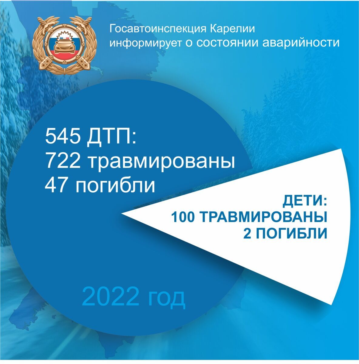 За прошедший год на дорогах Карелии произошло 545 дорожных аварий. В них пострадали 722 человека, еще 47 погибли. Об этом сообщили в ГИБДД республики.
