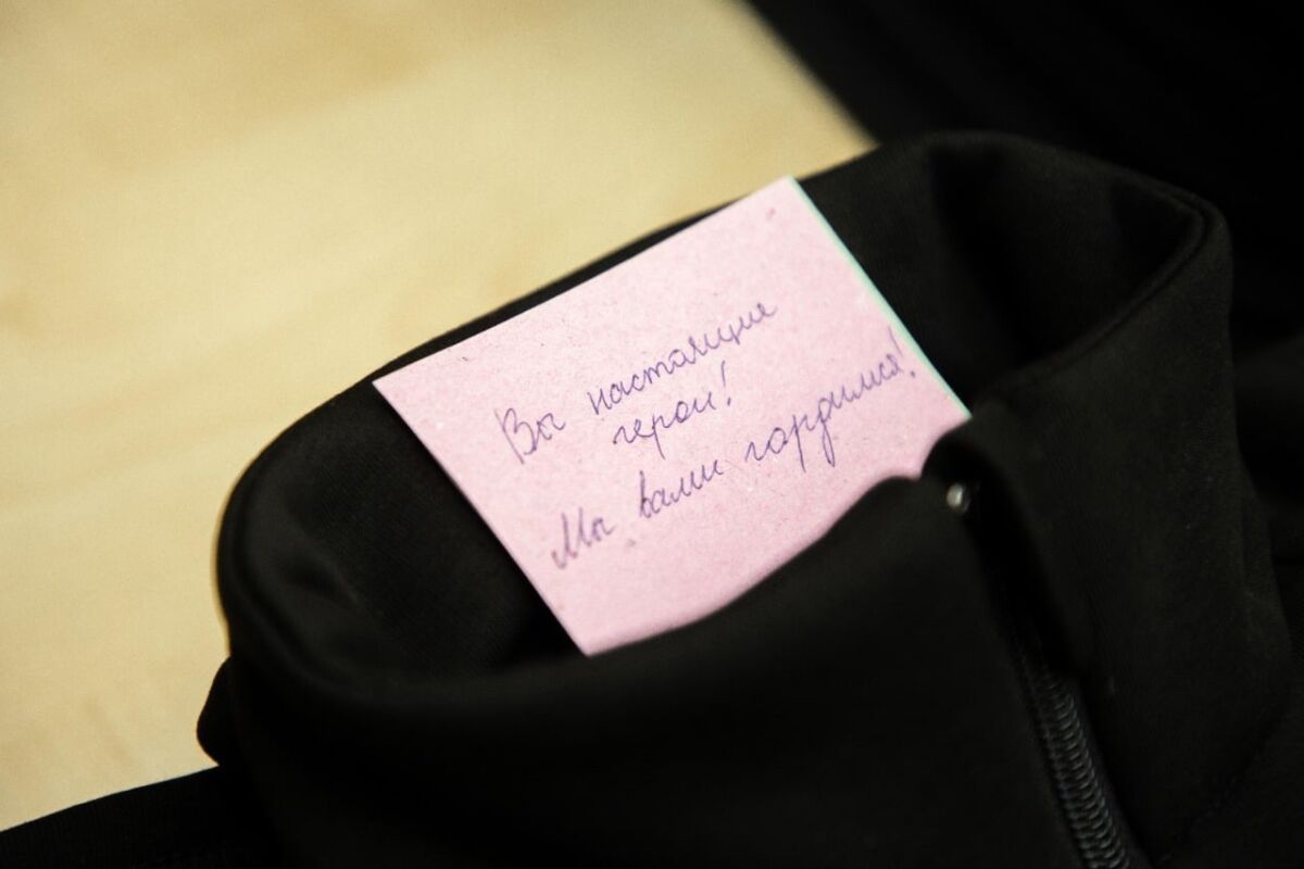 Мне довелось побывать в колледже в канун новогодних праздников, когда учащиеся вместе с опытными мастерами производственного обучения на занятиях по швейному производству изготовили уже вторую партию теплых вещей, — поделился спикер на своей странице в соцсети. – Казалось бы, вещи для суровых боевых условий, но все равно не обошлось без трогательной изюминки. В толстовке есть потайной карман, куда мастерицы вложили письма поддержки.
