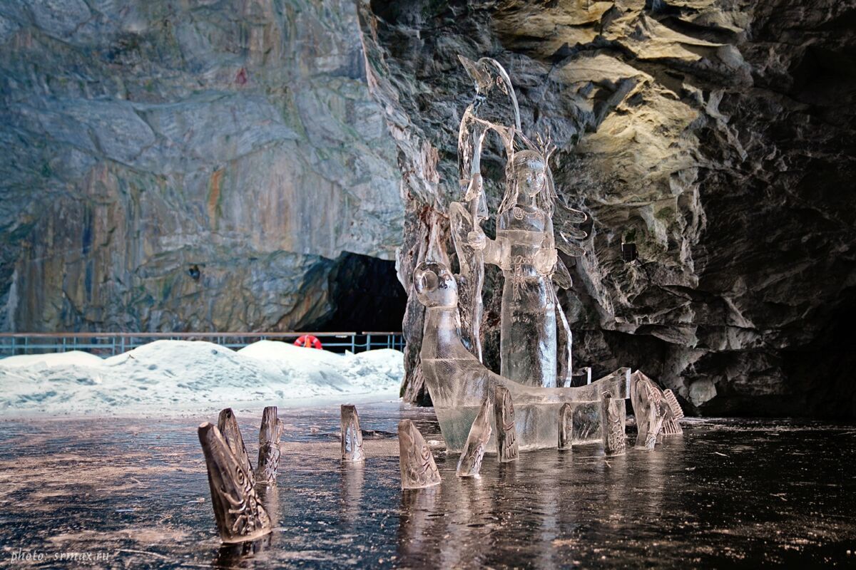 Лед для изготовления скульптур всегда добывают прямо из подземного озера. Для начала работ толщина льда должна составлять минимум 30 см.