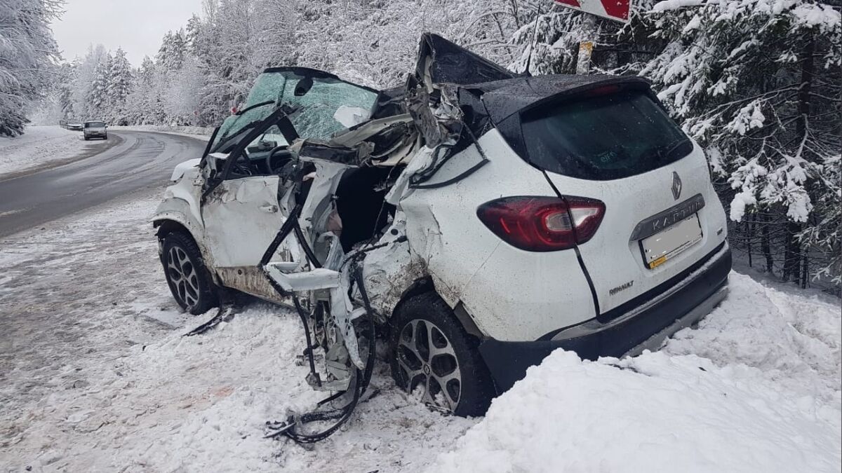 Прицеп лесовоза занесло в сторону легкового автомобиля, из-за чего произошло столкновение, — сообщается в паблике в ВК.