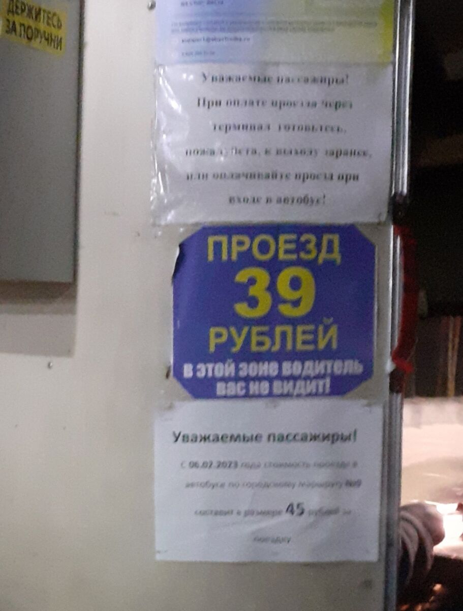 Со следующей недели подорожает проезд в автобусе №9. Уведомления об этом перевозчик разместил в салонах маршруток. Фото объявления выложила группа «Живой Петрозаводск».