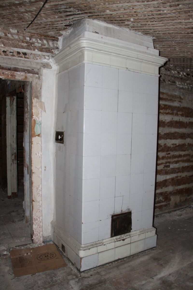 В старинном здании сохранились две изразцовые голландские печи. Они были расположены одна над другой на 1-м и 2-м этажах. Печи разбирались с сохранением изразцов для дальнейшего использования, а шамотный кирпич, из которого были сложены печи, к сожалению, для повторного применения не пригоден. И изразцы, и сам кирпич, как оказалось, весьма интересны. На обоих материалах есть клеймо иностранных производств.