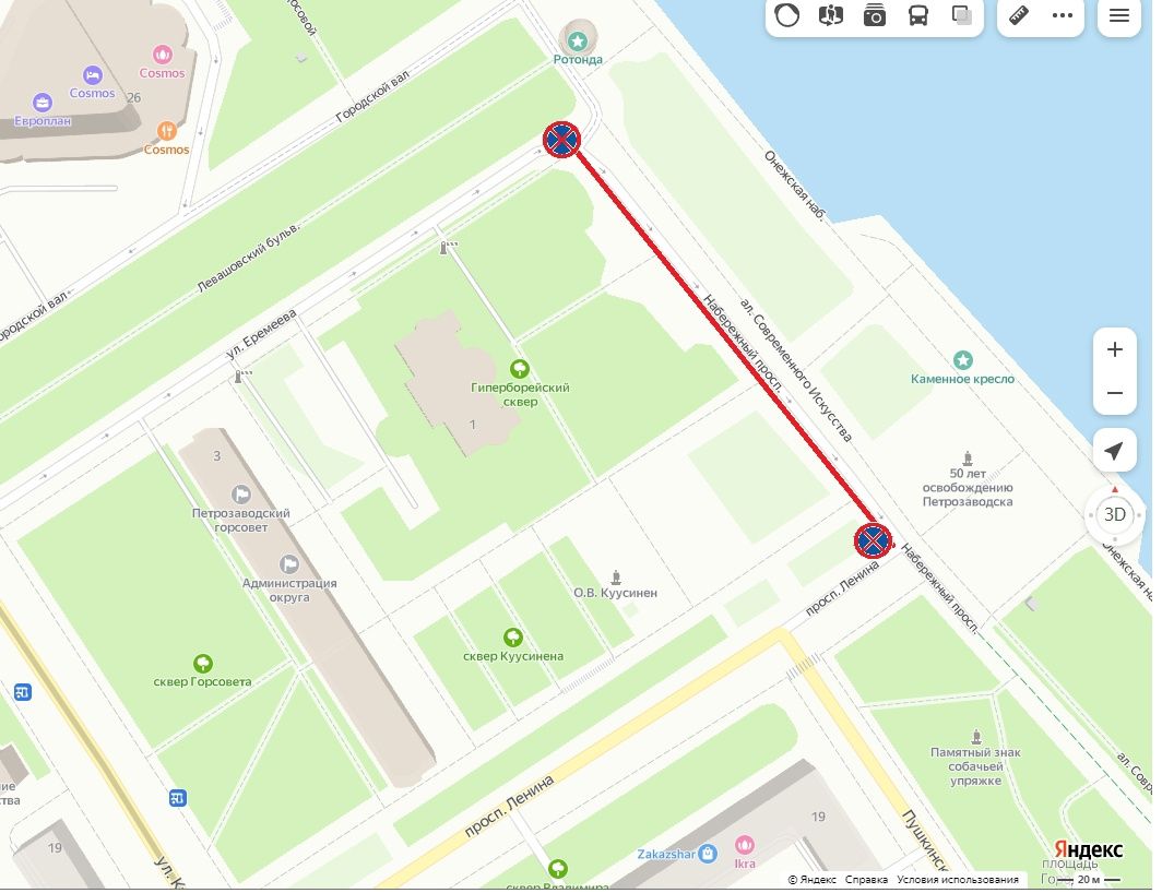 С сегодняшнего дня на участке автодороги Набережного проспекта от улицы Еремеева до проспекта Ленина запрещена остановка автомобилей. Основные ограничения введут накануне финального дня «Гипербореи» – с 20:00 10 февраля.