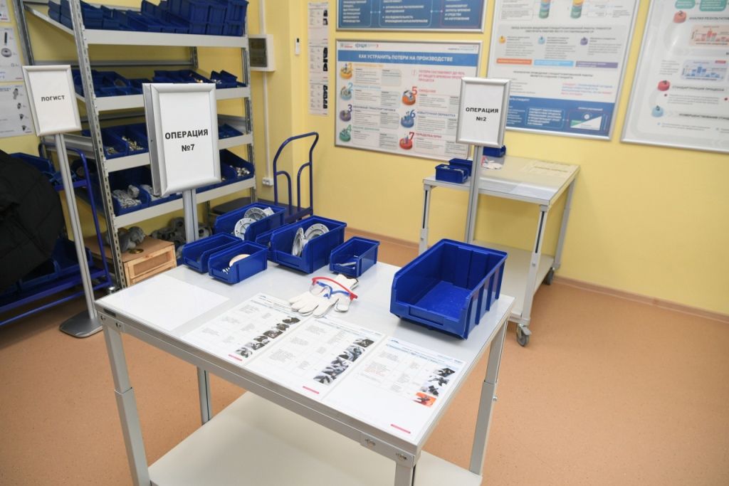 В специально оборудованной аудитории за счет федерального и регионального финансирования созданы все условия для приобретения сотрудниками навыков бережливого производства, умений эффективно работать в коллективе. Это должно помочь участникам «Фабрики процессов» максимально сократить производственные расходы и издержки непосредственно на рабочем месте.