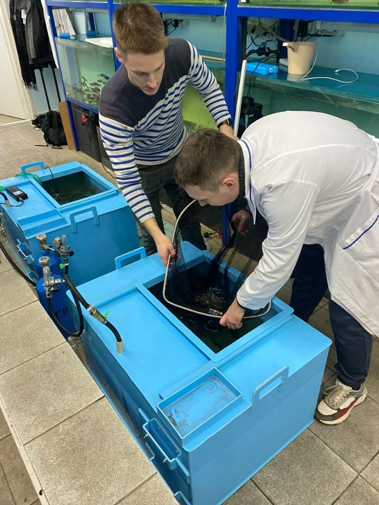 В настоящее время икра инкубируется в условиях аквариальной НИЦ по аквакультуре, а также ведется подготовка к выклеву личинок и их дальнейшему выращиванию.