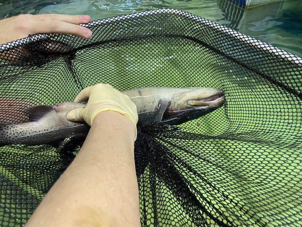 В рамках совместной работы по сохранению ценных пород радужной форели, завезенных в Республику Карелия из-за рубежа для карельского маточного стада, руководитель производства хозяйств М.В.Мудрецов в июле 2022 года произвел отбор будущих производителей и организовал специальные условия их содержания. В конце декабря прошлого года часть особей была привезена в НИЦ по аквакультуре ПетрГУ для получения половых продуктов.