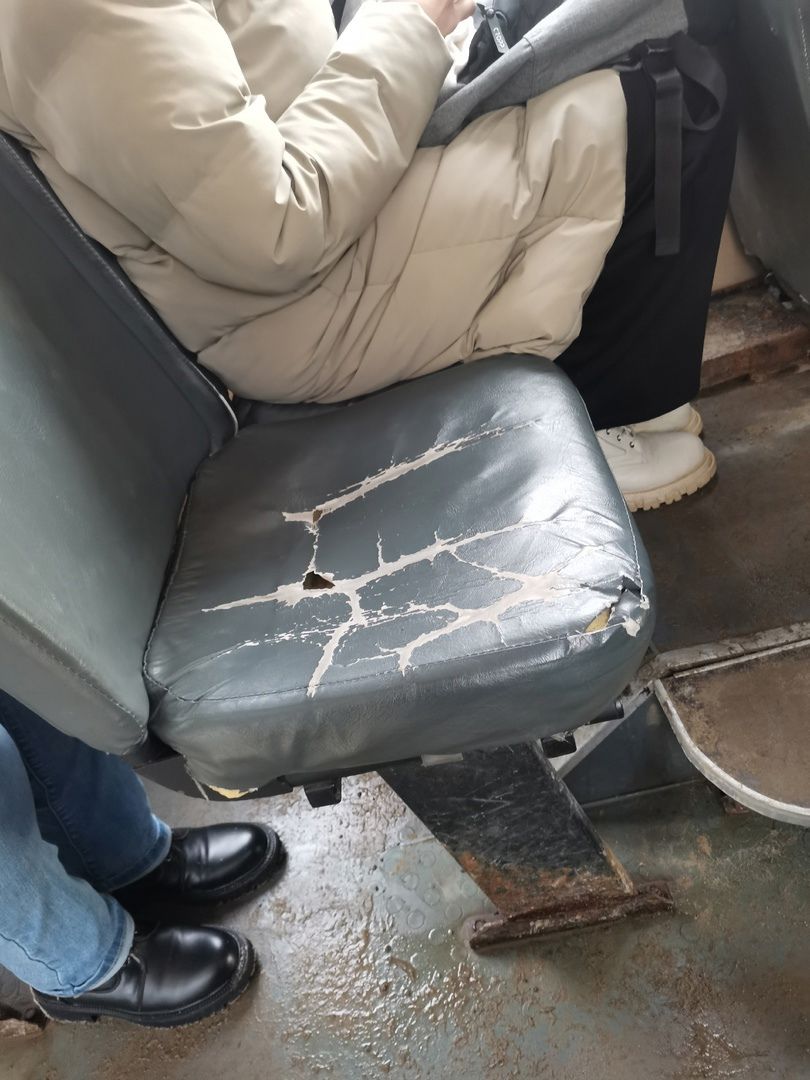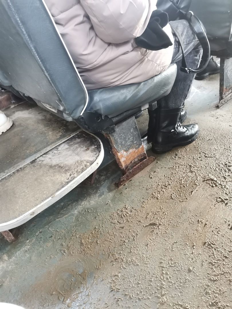 А вот как выглядит салон… Складывается ощущение, что просто забрали с помойки и отправили добывать деньги! И за такой проезд платить 50 РУБЛЕЙ! За такие условия? Да, в Санкт-Петербурге проезд в автобусе 65 рублей, но там такие «ПАЗики» не ездят по маршрутам и протяжённость маршрута бывает в разы больше.