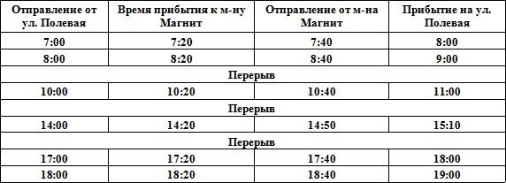 Автобусы будут бесплатными. Расписание предусматривает ежедневное выполнение 6-ти рейсов.