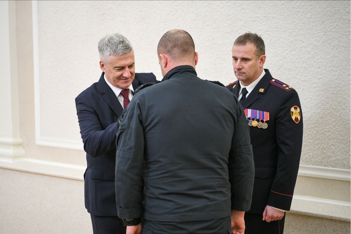 Награждены 25 росгвардейцев, принимавших участие в СВО. На торжественной церемонии Артур Парфенчиков вручил им награды – орден Мужества, медали Жукова, «За Отвагу», «За заслуги перед Отечеством» и «За отличие в охране общественного порядка».