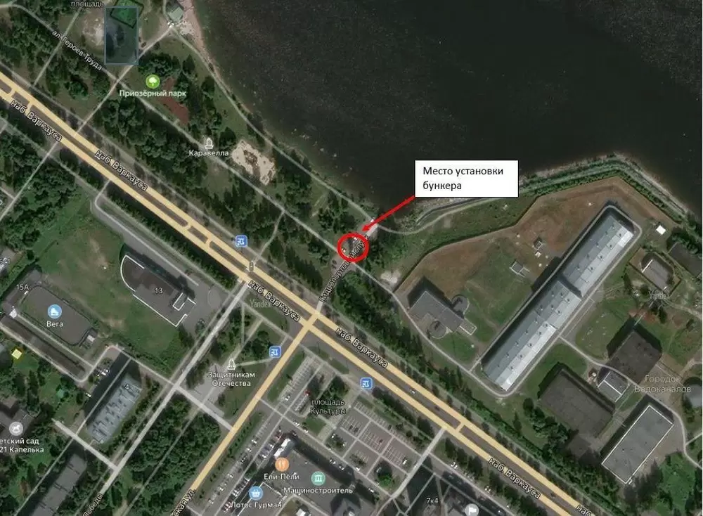 - в Приозерном парке на пересечении Гидропортового спуска и аллеи Героев Труда;