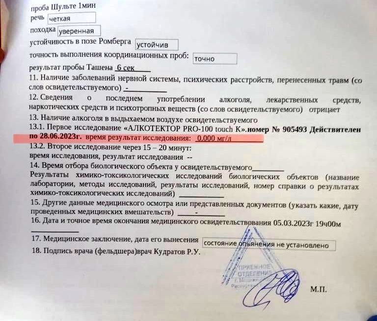 Максим Антипов признает, видео, которое опубликовано в сети, показывает именно директора агрессором, хотя опубликован только финальный момент конфликта. Совсем возмущает главу администрации, что Игоря Деревягина обвинили в том, что он был пьян. Хотя проведенное после конфликта освидетельствование показывает, что он был абсолютно трезв. Антипов опубликовал фото заключения.