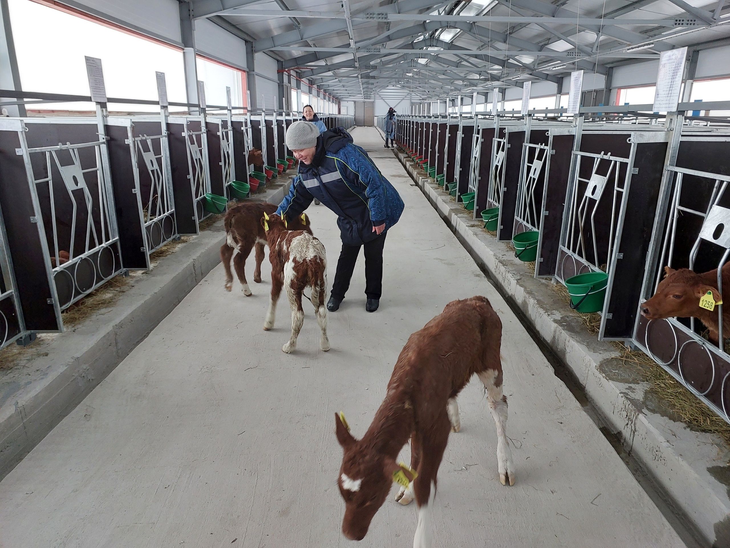 Здание построили с применением металлокаркаса и сэндвич-панелей. Внутри выполнили бетонирование полов, установили стеклопакеты и смонтировали новое стойловое оборудование. В телятнике созданы все условия для содержания новорожденных. В нем высокие потолки — много воздуха, «молочное такси», полный контроль температуры и влаги, отдельная молочная кухня с термостатом. На окнах — специальные роллеты, летом их откроют и малыши получат естественный солнечный свет. Благодаря современным решениям ухаживать за телятами может один человек.