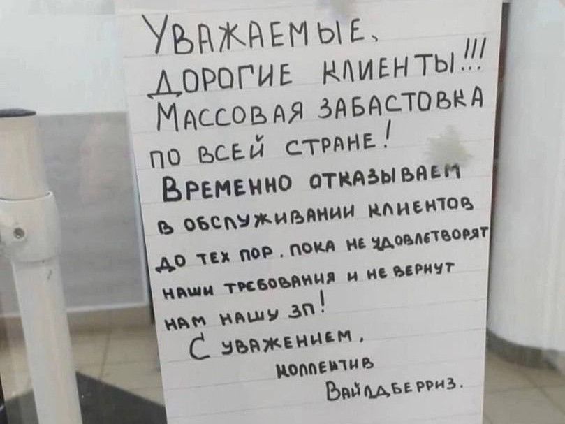 В соцсетях появились фотографии объявлений о закрытии на забастовку отделений в Сибири и на Дальнем Востоке.