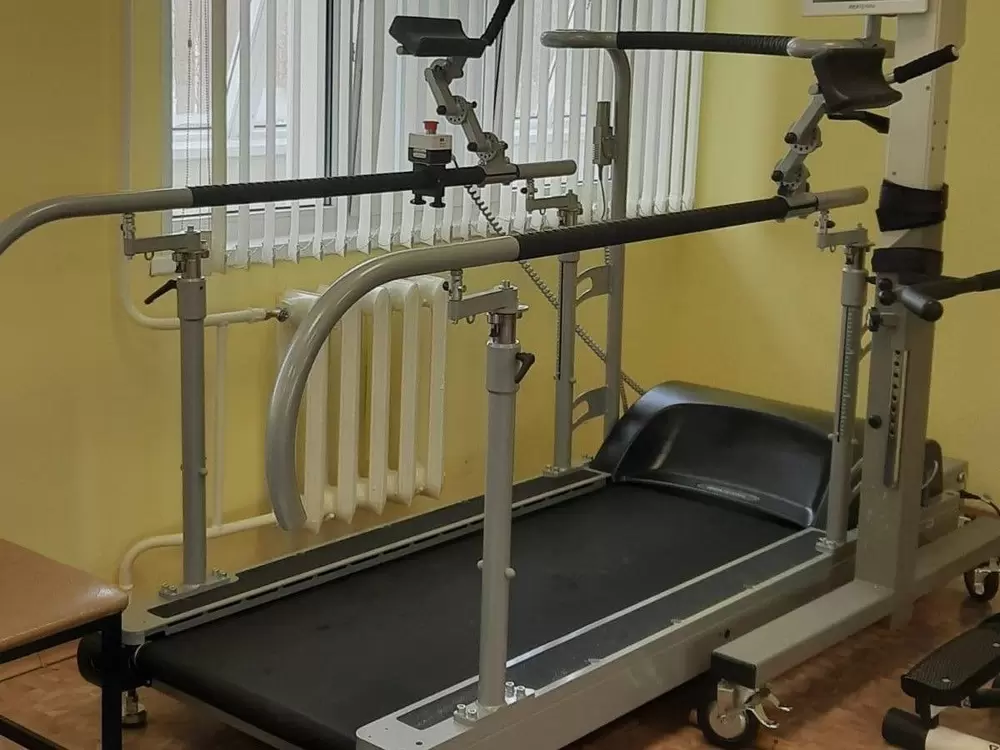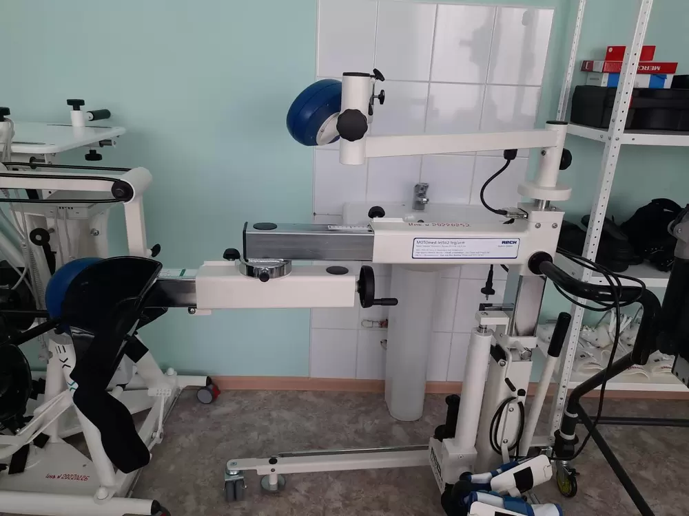 В отделении проходят реабилитацию пациенты при нарушении различных функций организма, в том числе после инсульта. Там устновлено все необходимое для этих целей оборудование. Сейчас помимо тренажеров в палаты закупили специальные прикроватные тумбочки для тяжелобольных пациентов с поворотным столиком.