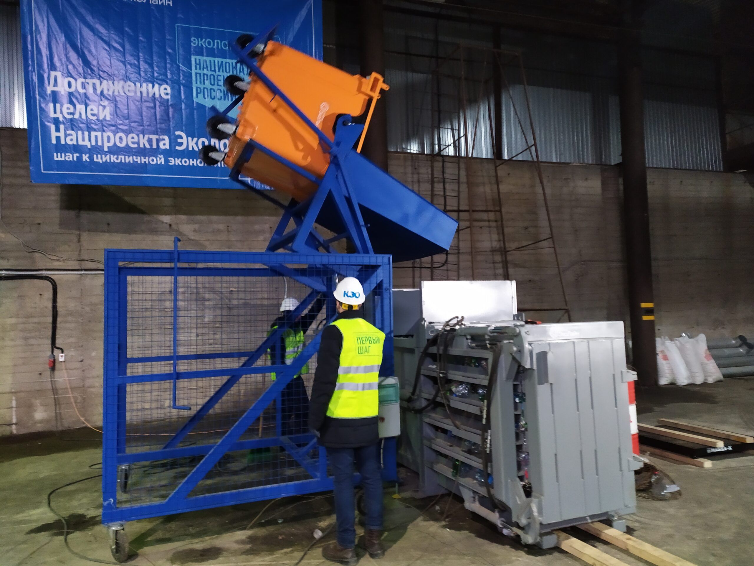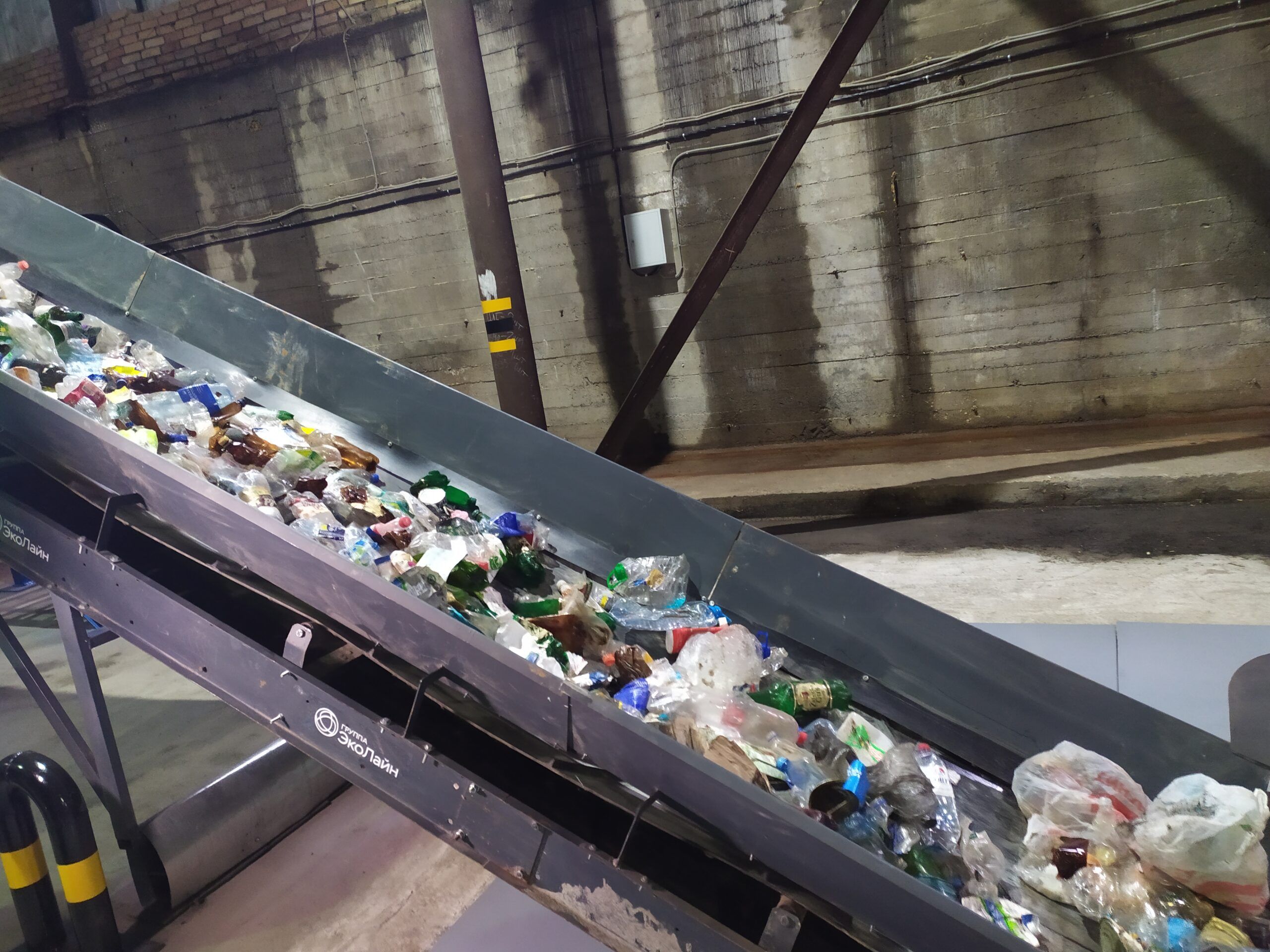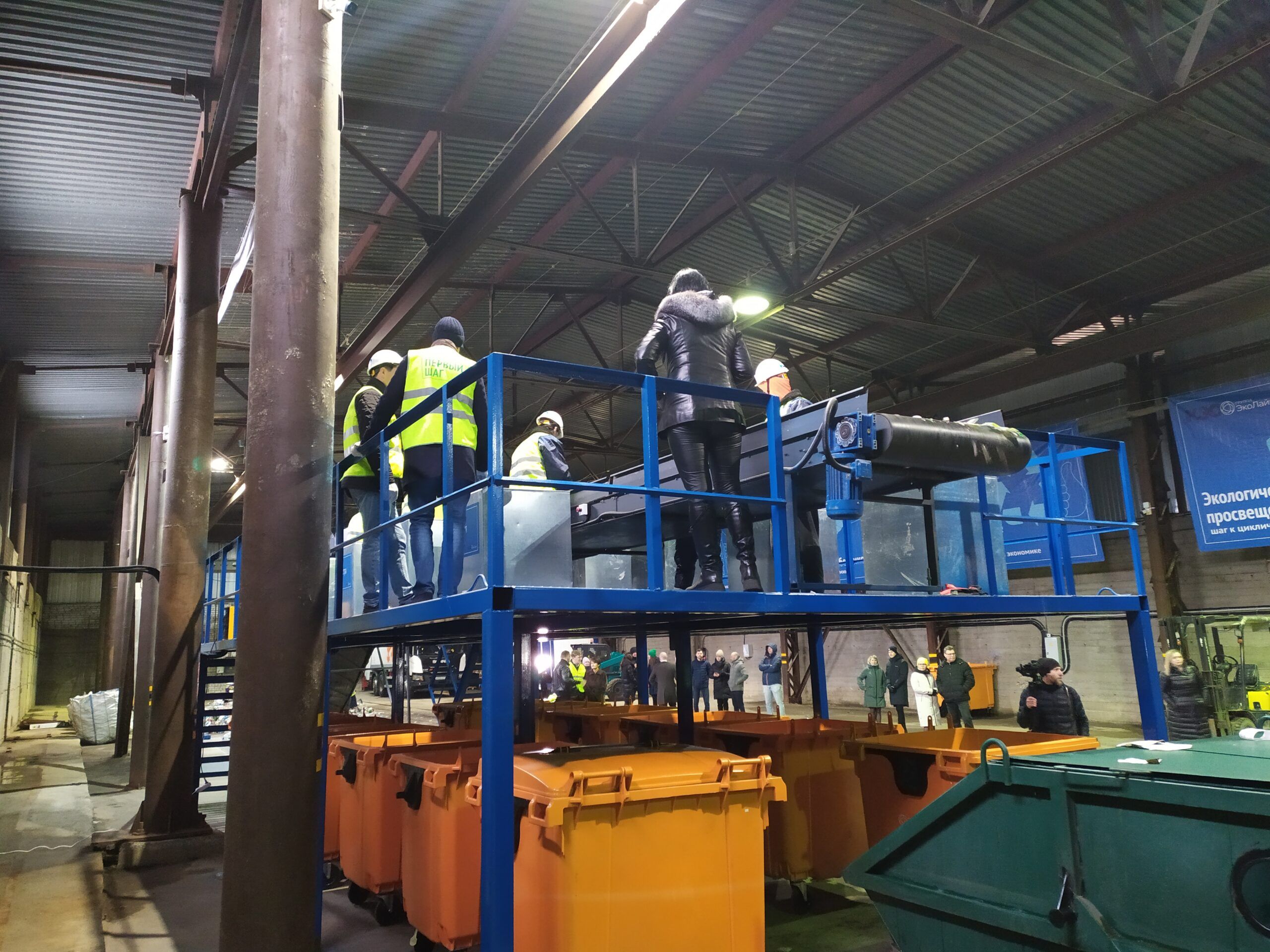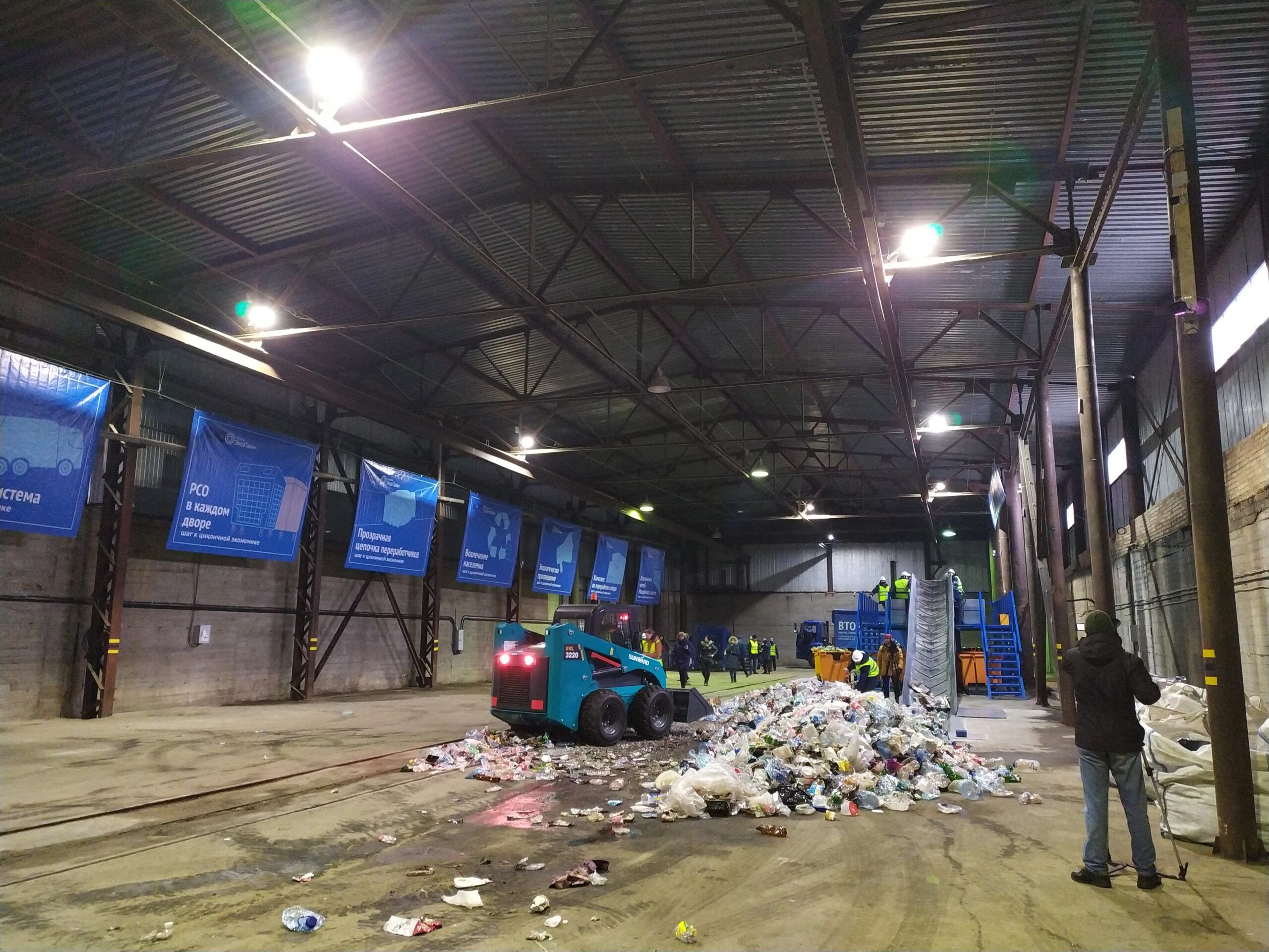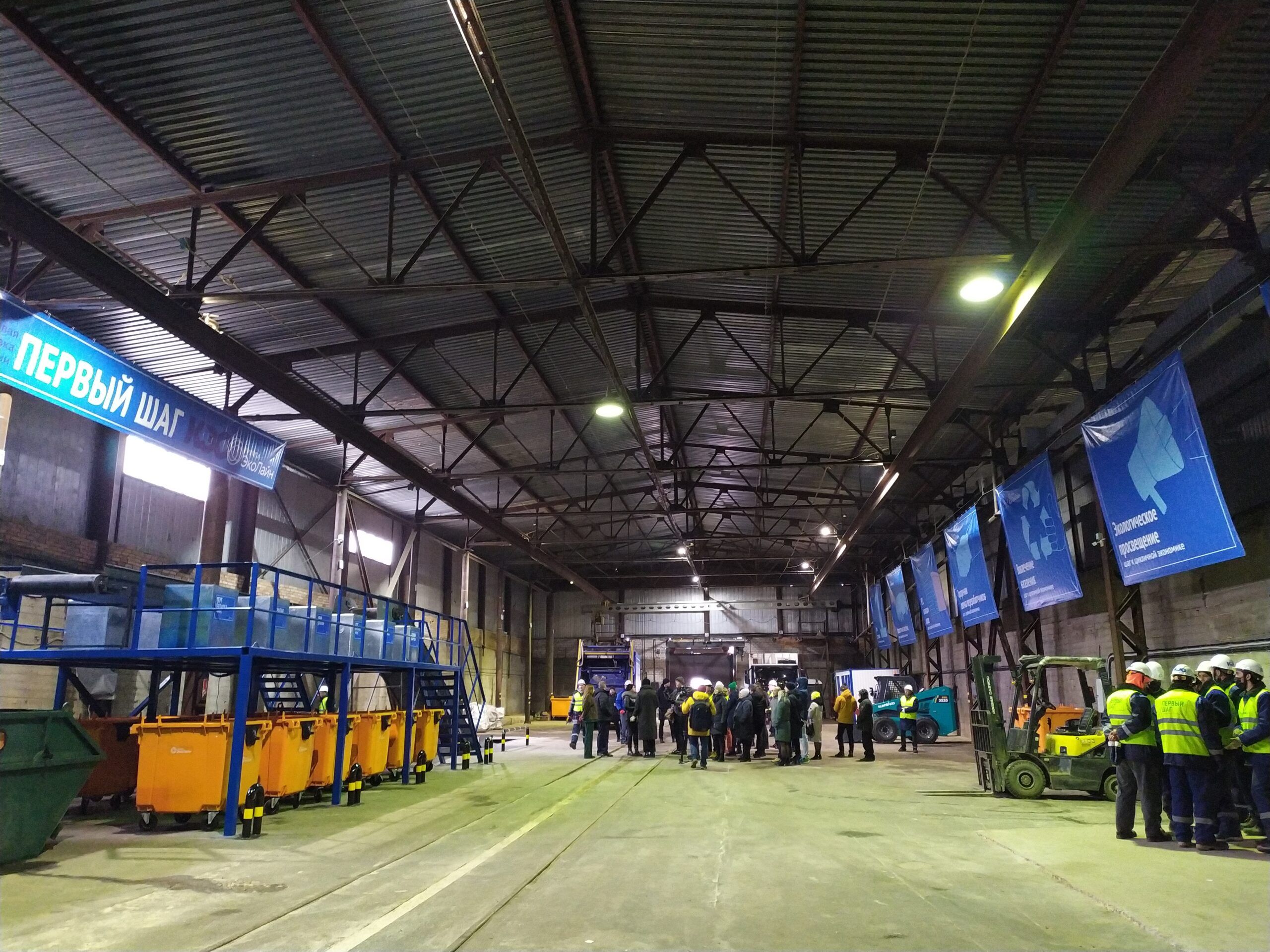 «Первый шаг», — гласят баннеры, которые развешены в огромном ангаре на улице Зайцева, 65. Это и есть новая сортировочная станция. Сама установка пока не слишком внушительных размеров, но на те объемы, которые планируют собирать, достаточная, говорит представитель компании «Эколайн».