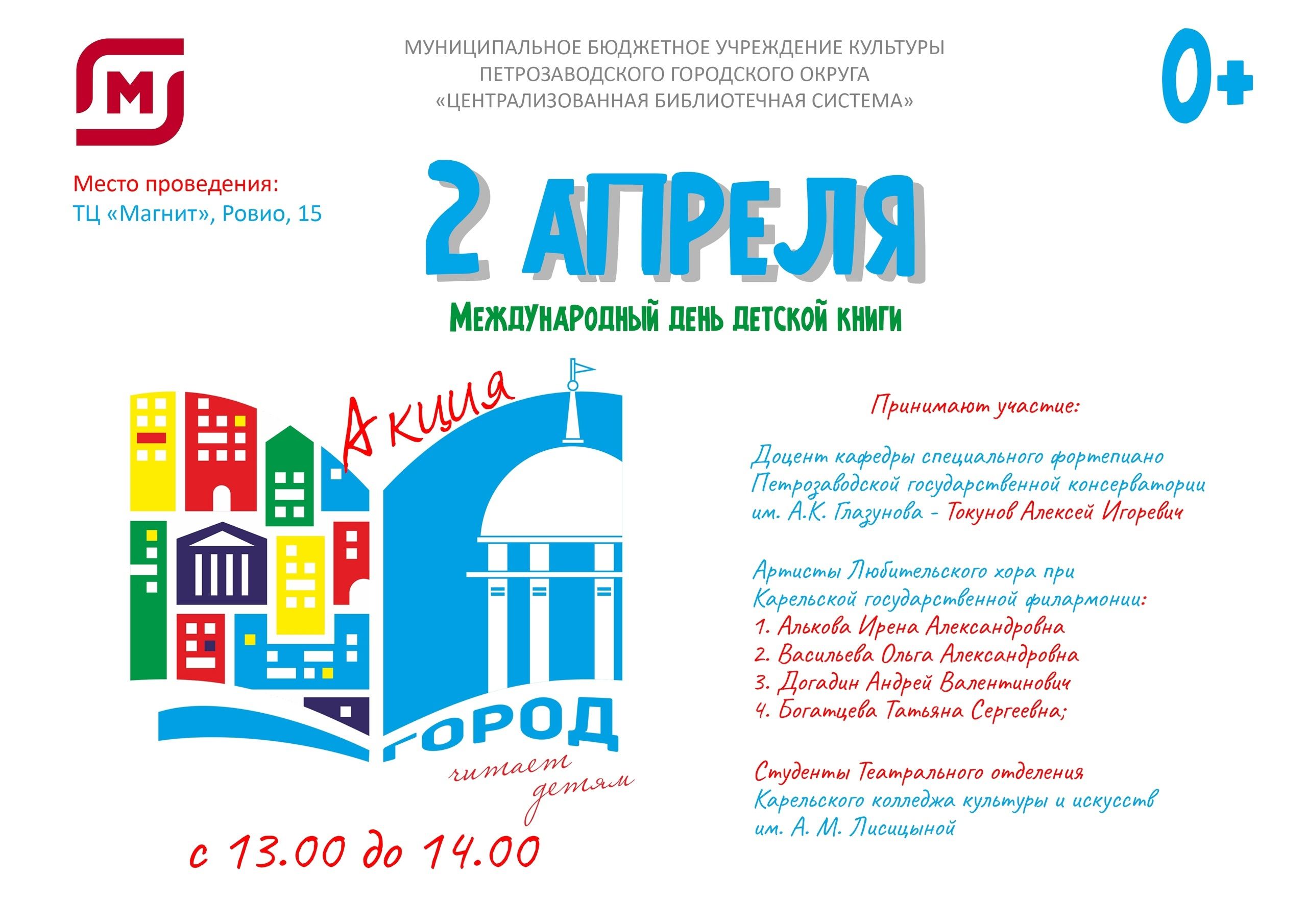 В Международный день детской книги, 2 апреля, на разных площадках Петрозаводска пройдет уже ставшая традиционной акция «Город читает детям».