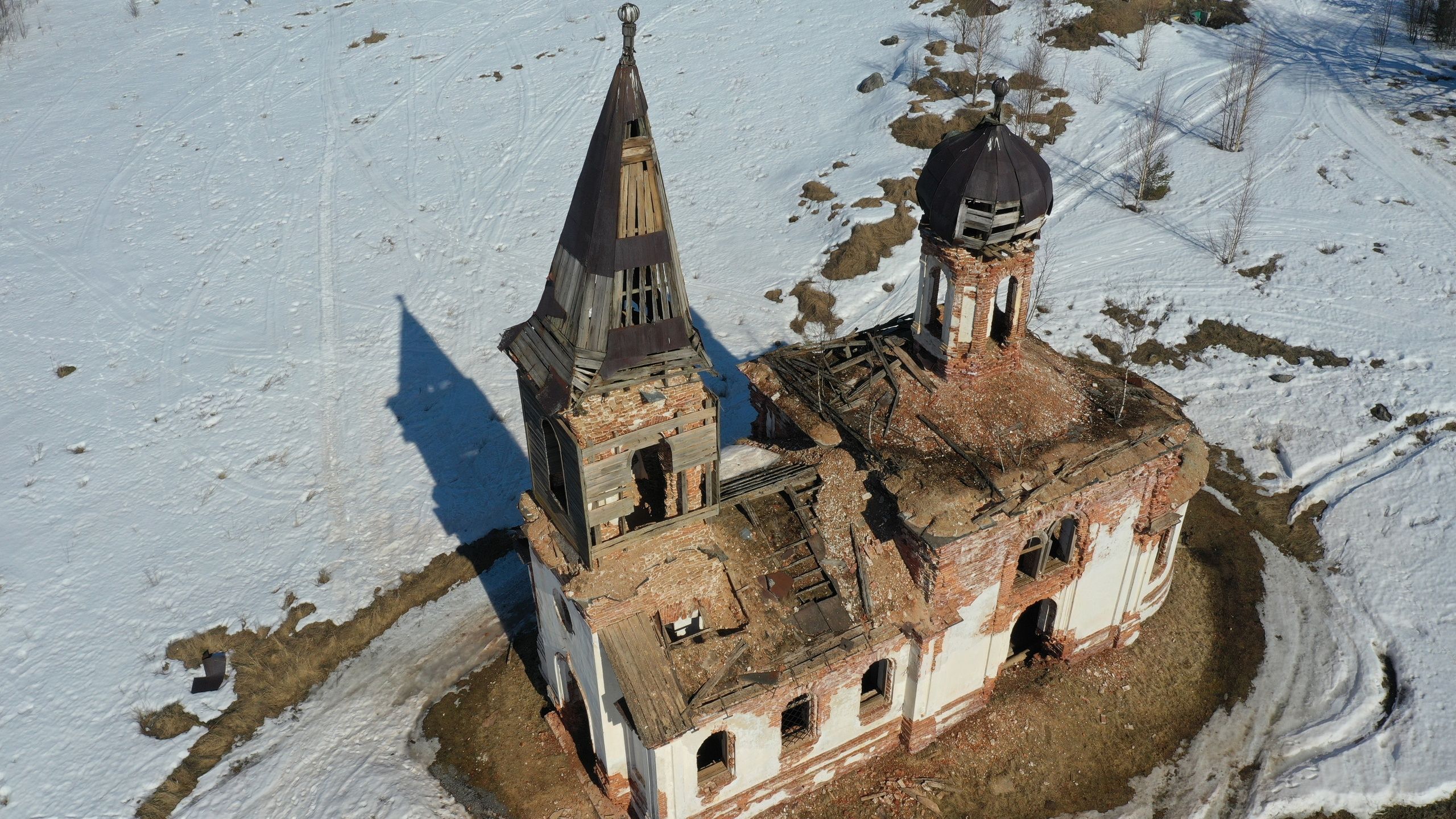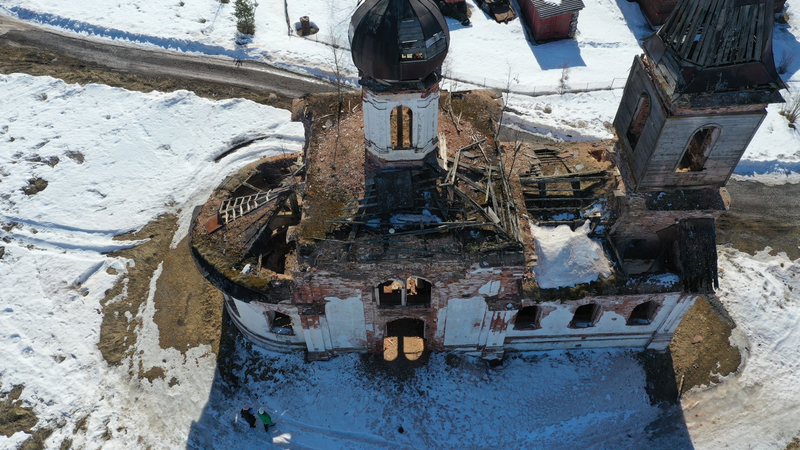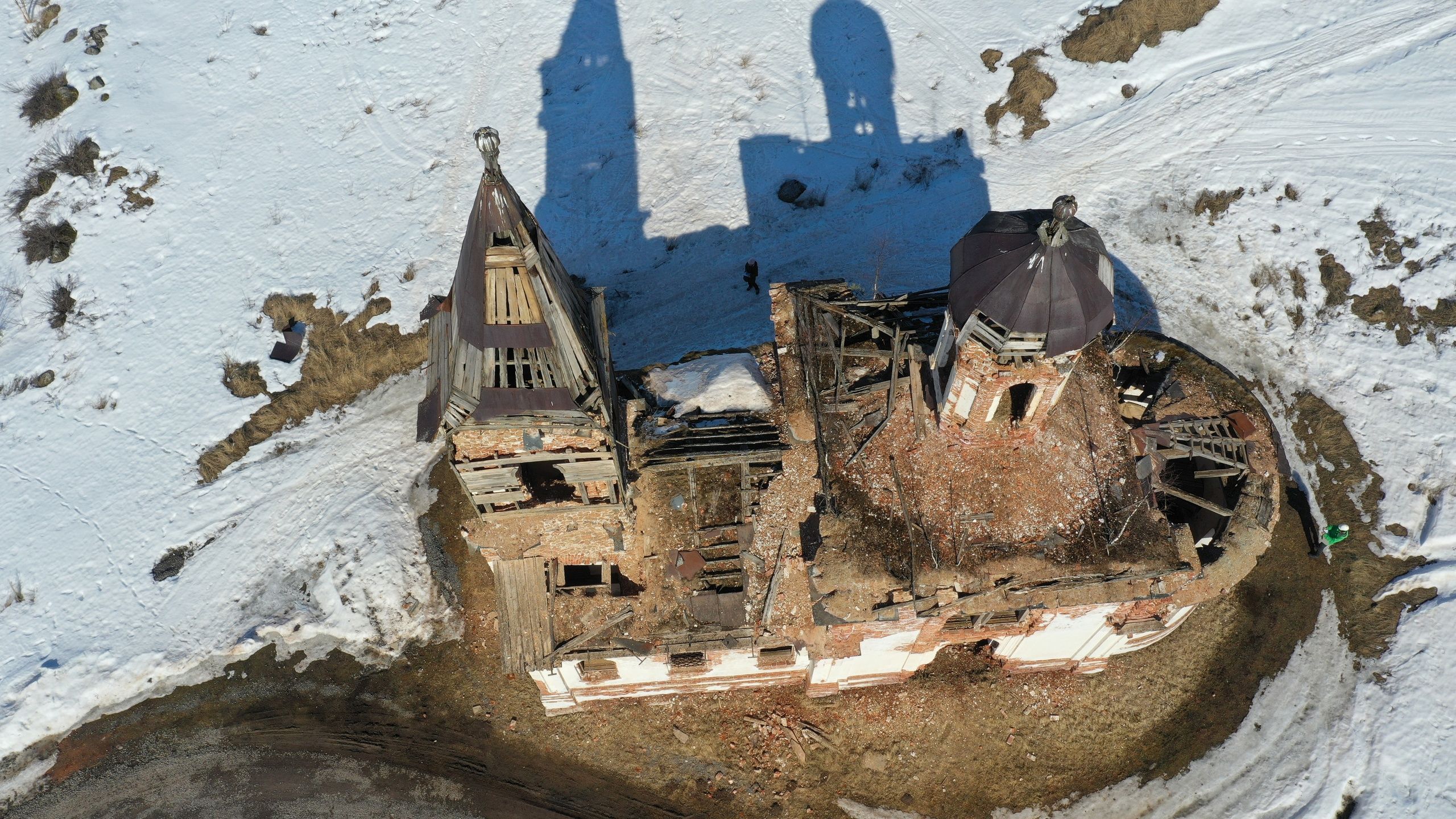 Цели нашего проекта идеально совпали с просьбой, мы выбрали солнечный безветренный день и отправились на фото и видеосъемку в деревню Белая гора, — рассказал Илья. – В результате удалось сделать серию снимков верхней части храма Казанской иконы Богоматери, которые, как мы надеемся, помогут в разработке реставрационно-восстановительной документации.