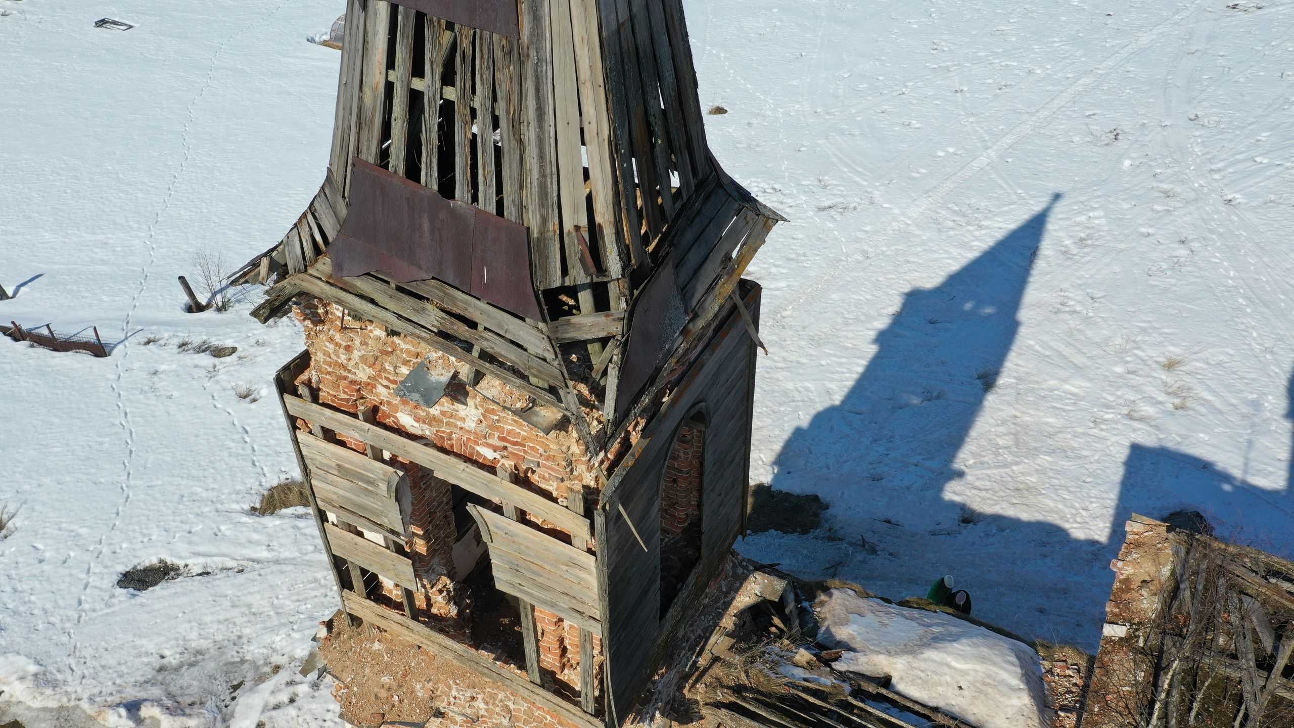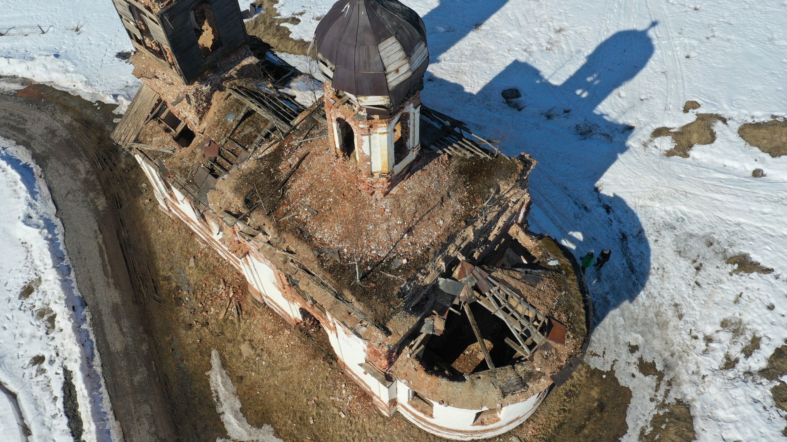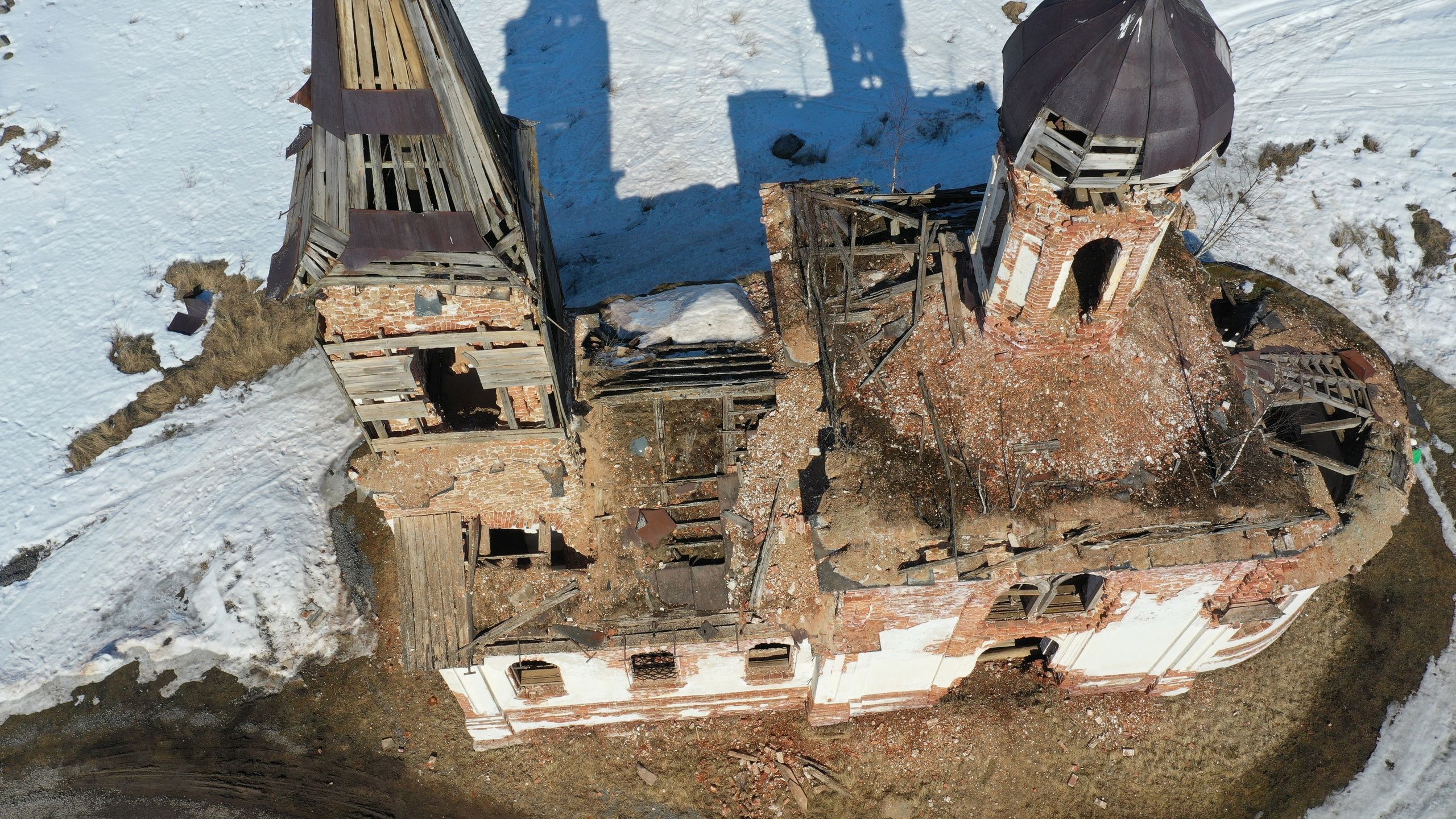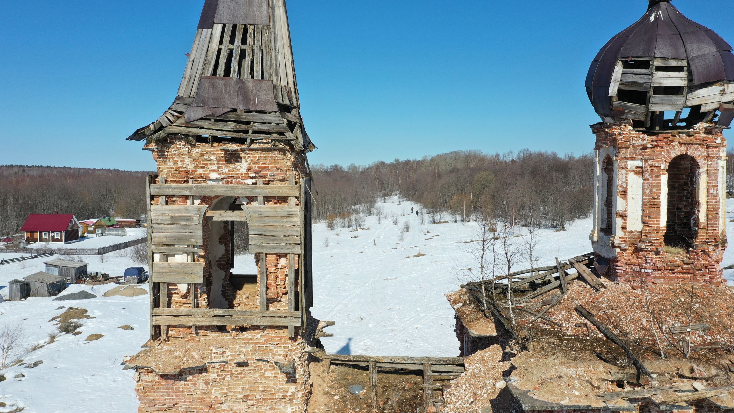 Цели нашего проекта идеально совпали с просьбой, мы выбрали солнечный безветренный день и отправились на фото и видеосъемку в деревню Белая гора, — рассказал Илья. – В результате удалось сделать серию снимков верхней части храма Казанской иконы Богоматери, которые, как мы надеемся, помогут в разработке реставрационно-восстановительной документации.