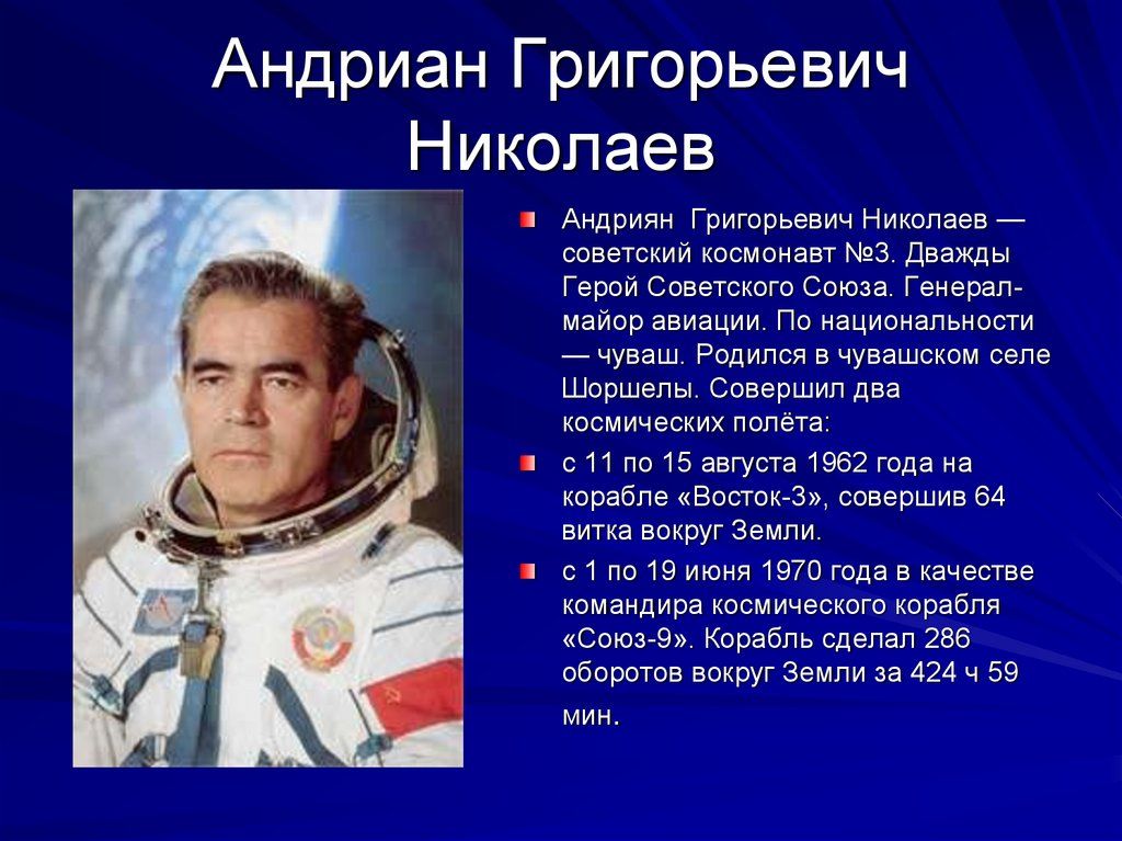 Работал он в Деревянке Прионежского района. Андриан Николаев летал в космос 1962 и 1970 году, побив рекорды по продолжительности. В Национальном музее Карелии есть даже предметы, связанные с этим космонавтом.
