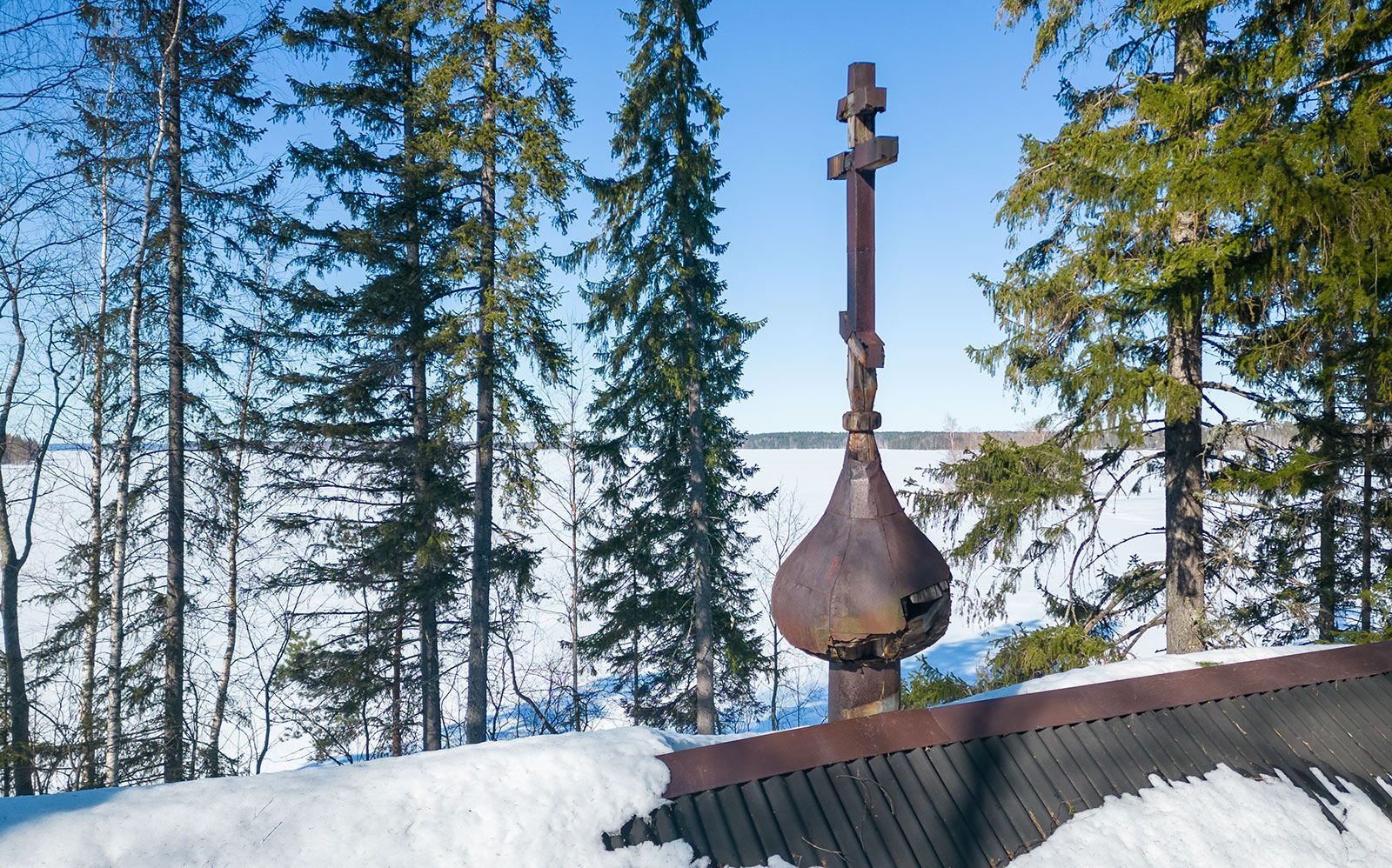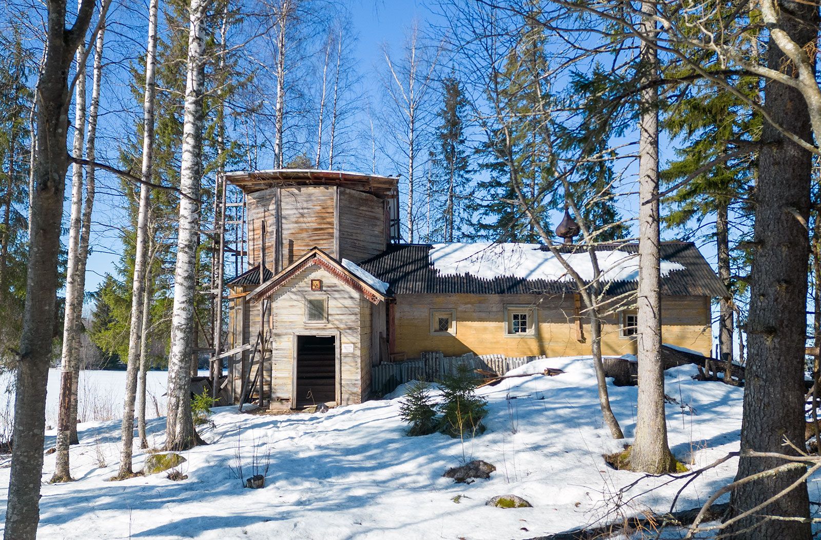 До 80-х годов XX века на берегу озера в центре деревни стояла красивая деревянная часовня. В середине 80-х годов она сгорела. Сейчас на месте часовни стоит поклонный крест, — рассказали участники экспедиции.
