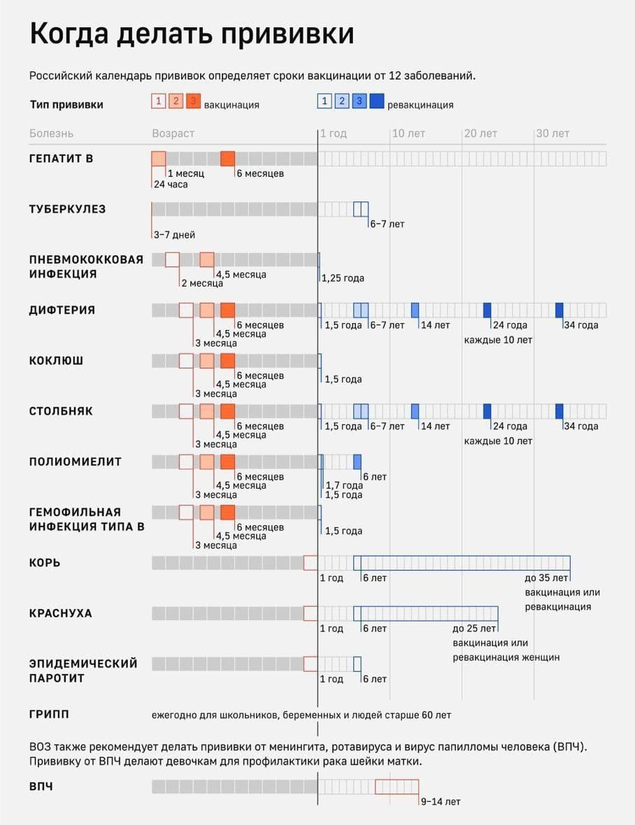 В списке прививки в том числе от гепатита, пневмококковой инфекции, столбняка и туберкулёза. Большинство рекомендаций составлено для детей и взрослых, имеющих эпидемические показания, то есть находящихся в зоне риска или уже заболевших, — уточнил Михаил Охлопков.