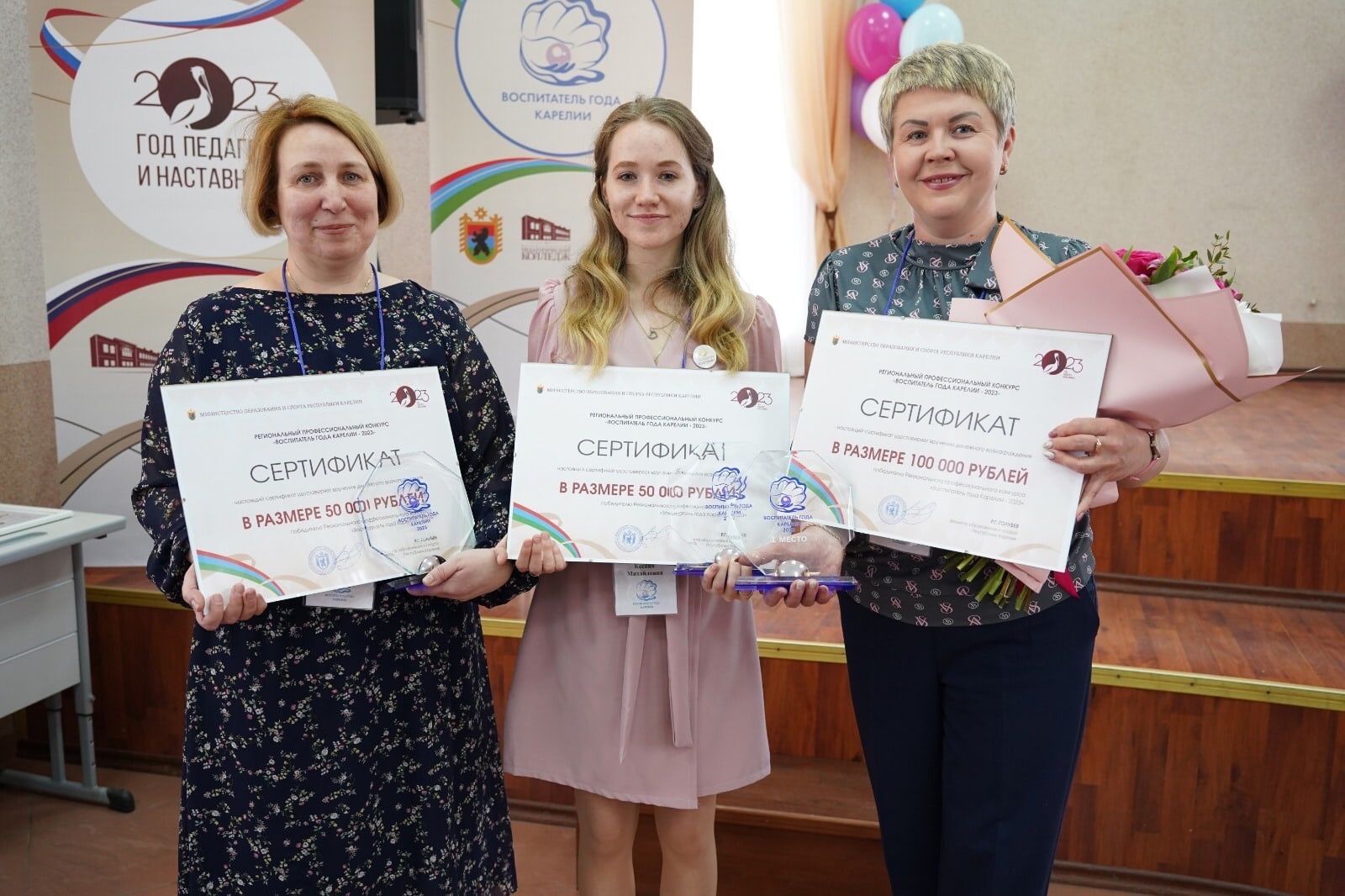Лауреатами стали музыкальный руководитель петрозаводского детского сада № 20 «Лумикелло» Светлана Кобелева, воспитатель петрозаводского детского сада №71 «Золотая рыбка» Ксения Грушецкая,