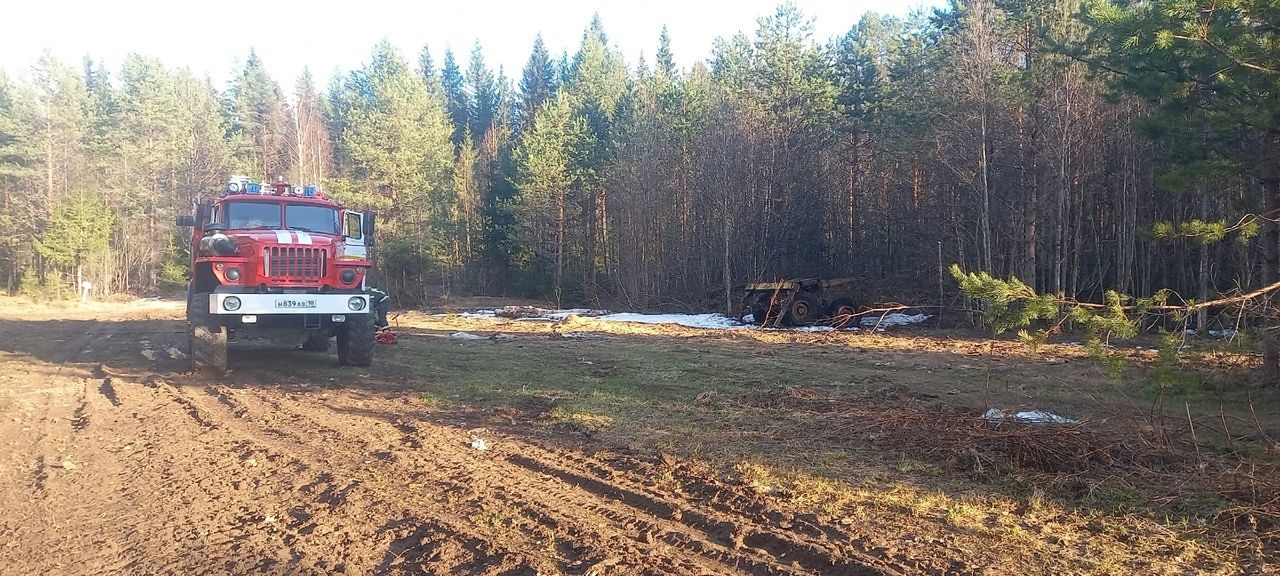 1 мая на дороге «Долматово-Няндома-каргополь-Пудож» загорелся прицеп для перевозки древесины. Информация спасателям поступила вечером того же дня. На место выехали пудожские пожарные.
