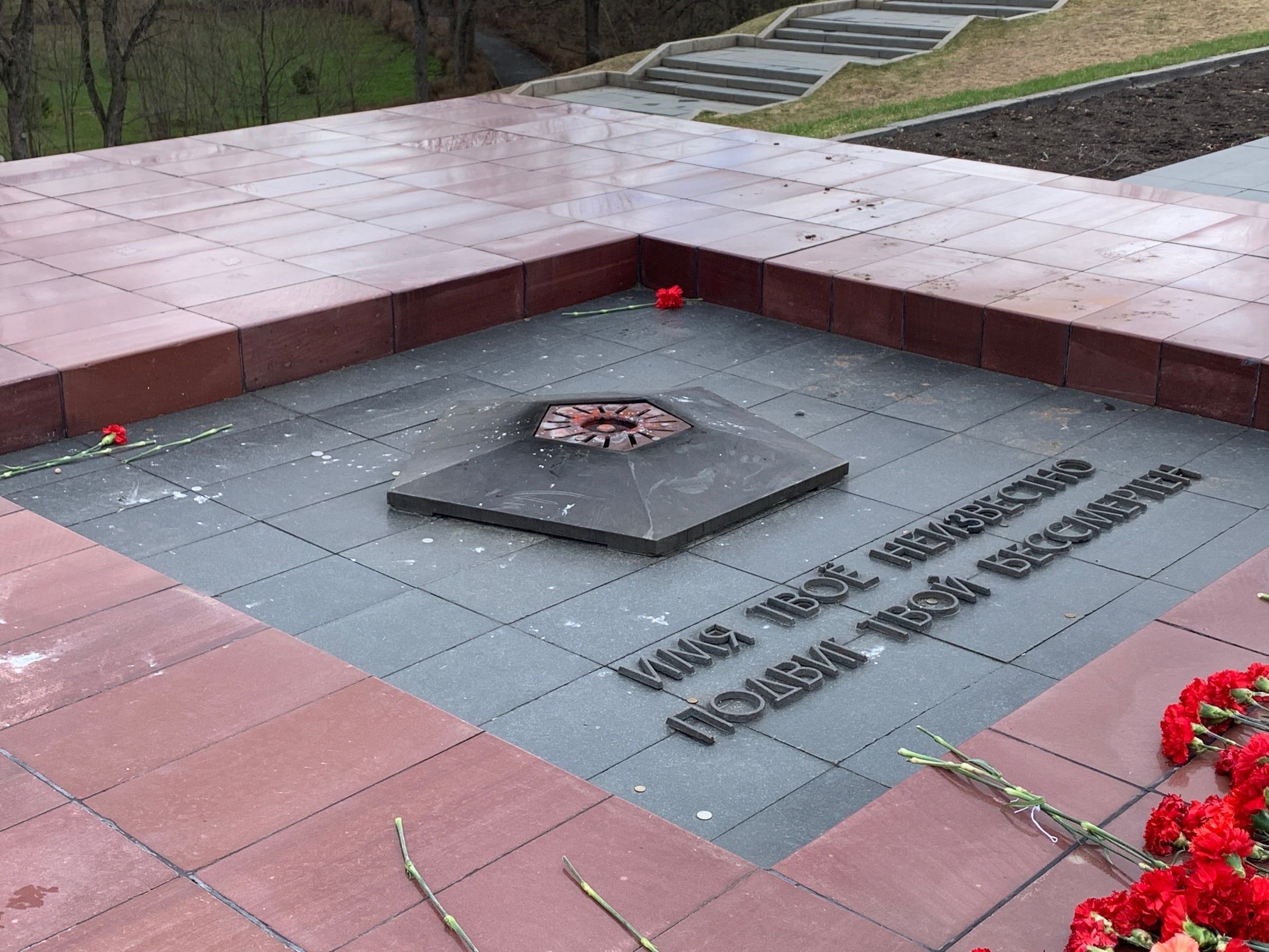 Сегодня днём на площади Ленина из-за сильного ветра погас Вечный огонь.