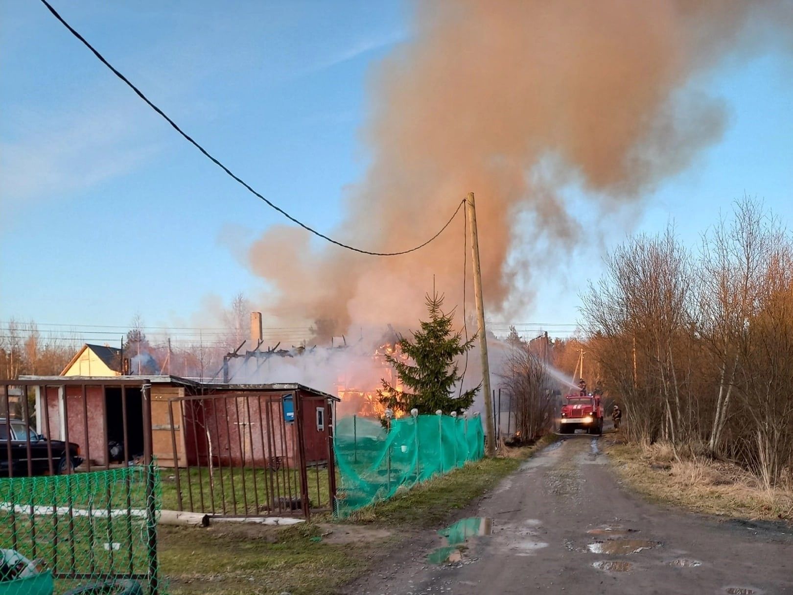 В 19 часов 28 минут на центральный пункт пожарной связи поступило сообщение о пожаре. Расстояние до ближайшей пожарной части составило 8 км. По прибытии к месту вызова установлено, что происходит открытое горение кровли и второго этажа, двухэтажного деревянного дома.