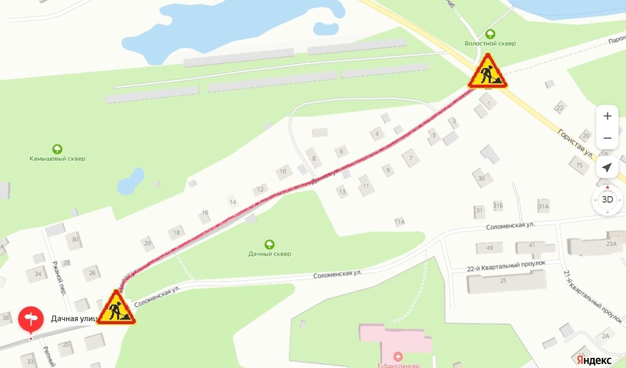 Работы на водопроводной сети ведутся на улице Дачной. В связи с этим закрыто движение на участке от улицы Гористой до Соломенской. Для водителей установят информационные щиты со схемами объезда.