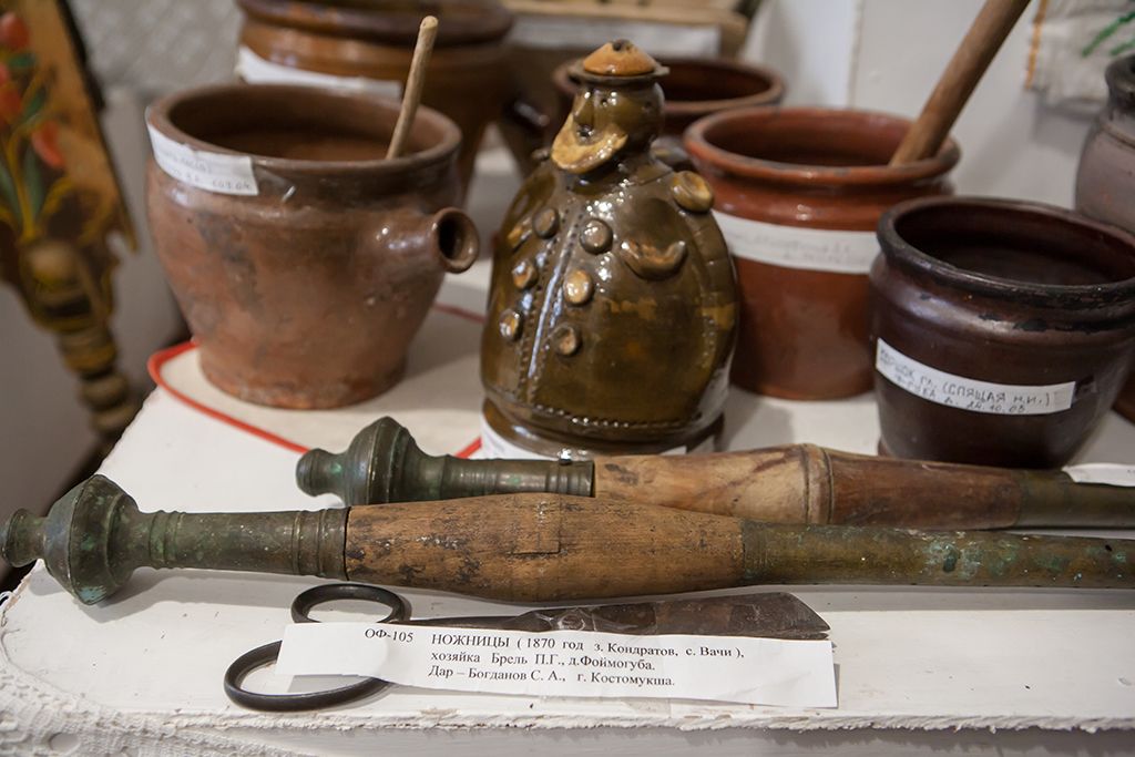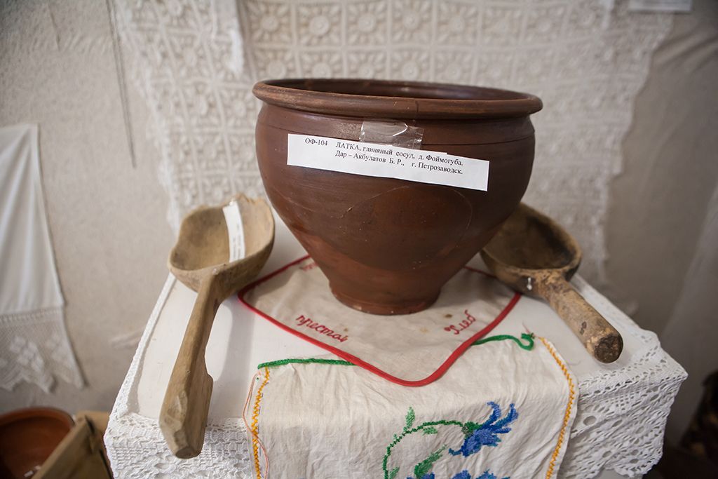 Глава также отметил, что статуса музея и картинной галереи у коллекции в Фоймогубе нет. Хотя экспонатов интересных немало. Есть скандинавский топор XIV века, патефон в рабочем состоянии, фарфоровая посуда, штык с Первой мировой войны, посуда и утварь, столетние деньги и журналы. Если картины подарили художники, то экспонаты собирали местные жители. И у каждого экспоната есть подпись – кто подарил его музею. То есть юридически экспонаты принадлежат людям. Посмотрите на фотографии редких экспонатов, которые сделал фотограф Игорь Подгорный в рамках проекта «Заонежье обетованное».