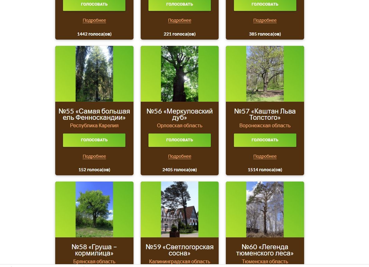 Номер нашей ели в голосовании – 55-й. Почитать о конкурсе подробнее и отдать свой голос на сайте можно до 1 августа. Пока голосов у нашей ели немного– до лидеров ей далеко.