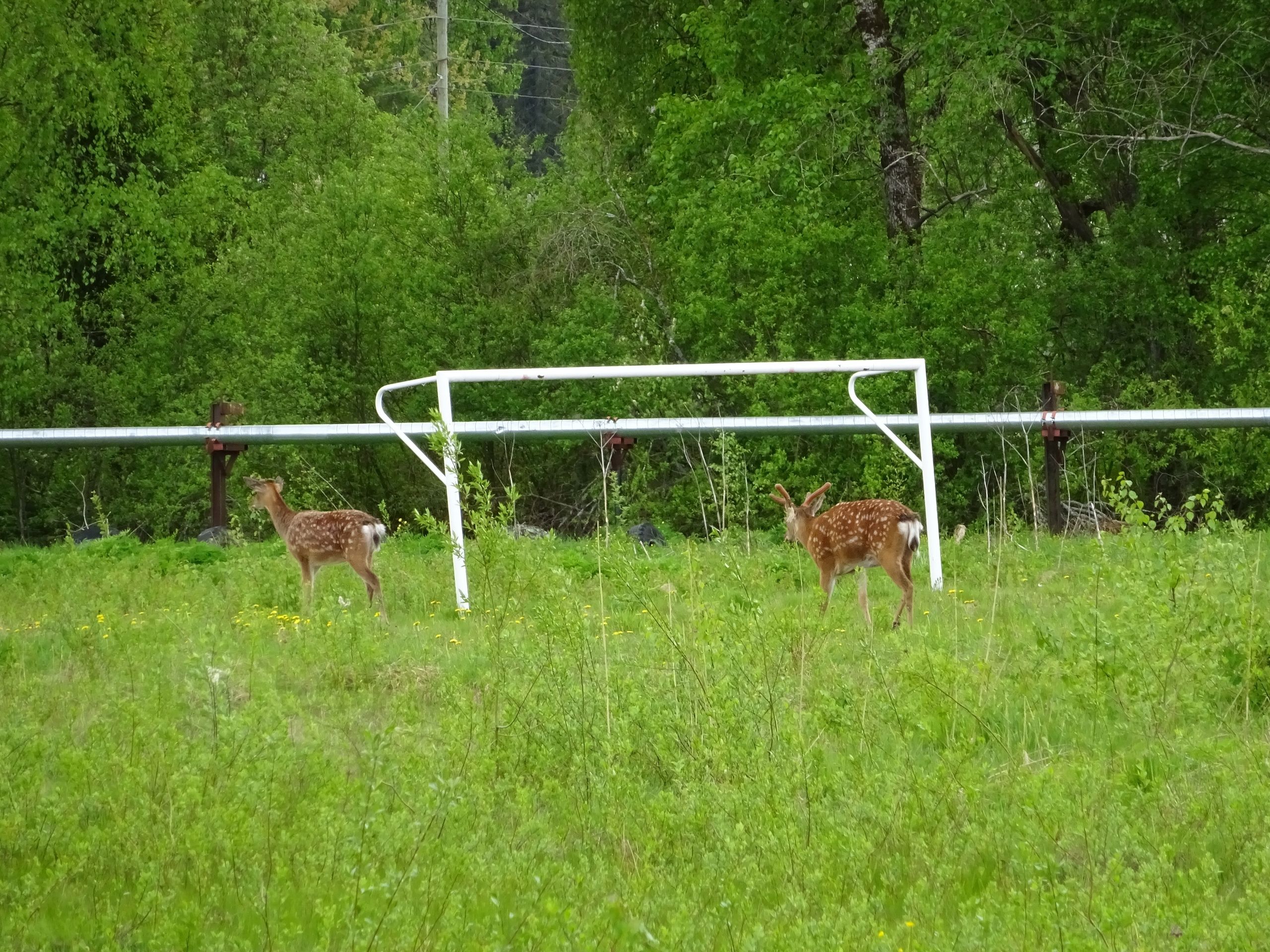 Спустя пару дней снимки появились в местном паблике «ВКонтакте». Олени мирно паслись на стадионе перед школой.