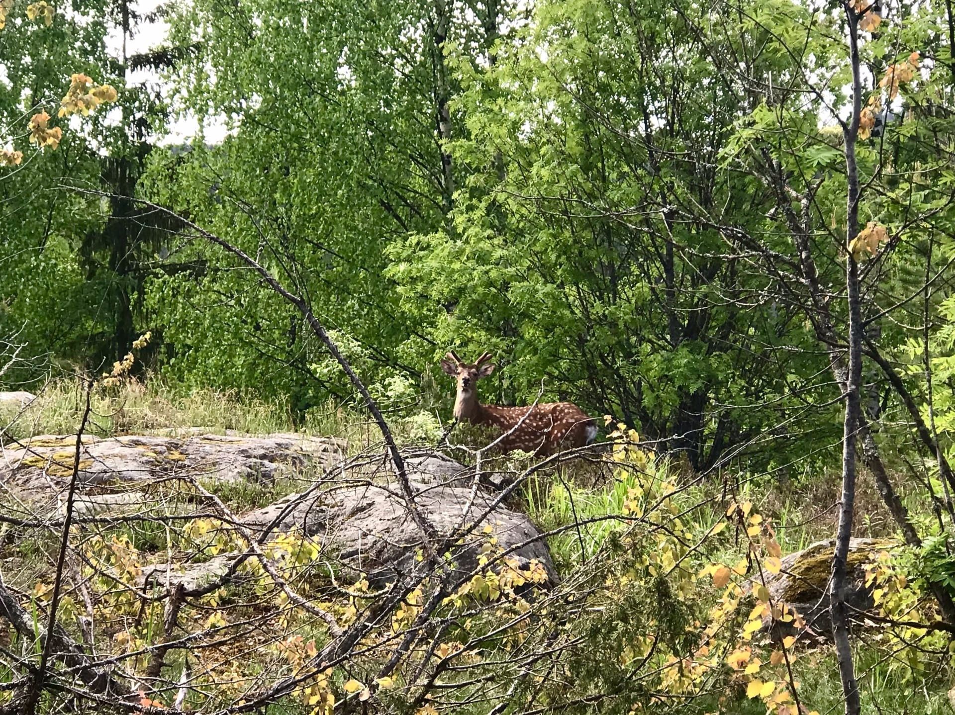 В конце мая оленей снова заметили рядом с населенным пунктом. Еще одной местной жительнице посчастливилось рассмотреть их вблизи.