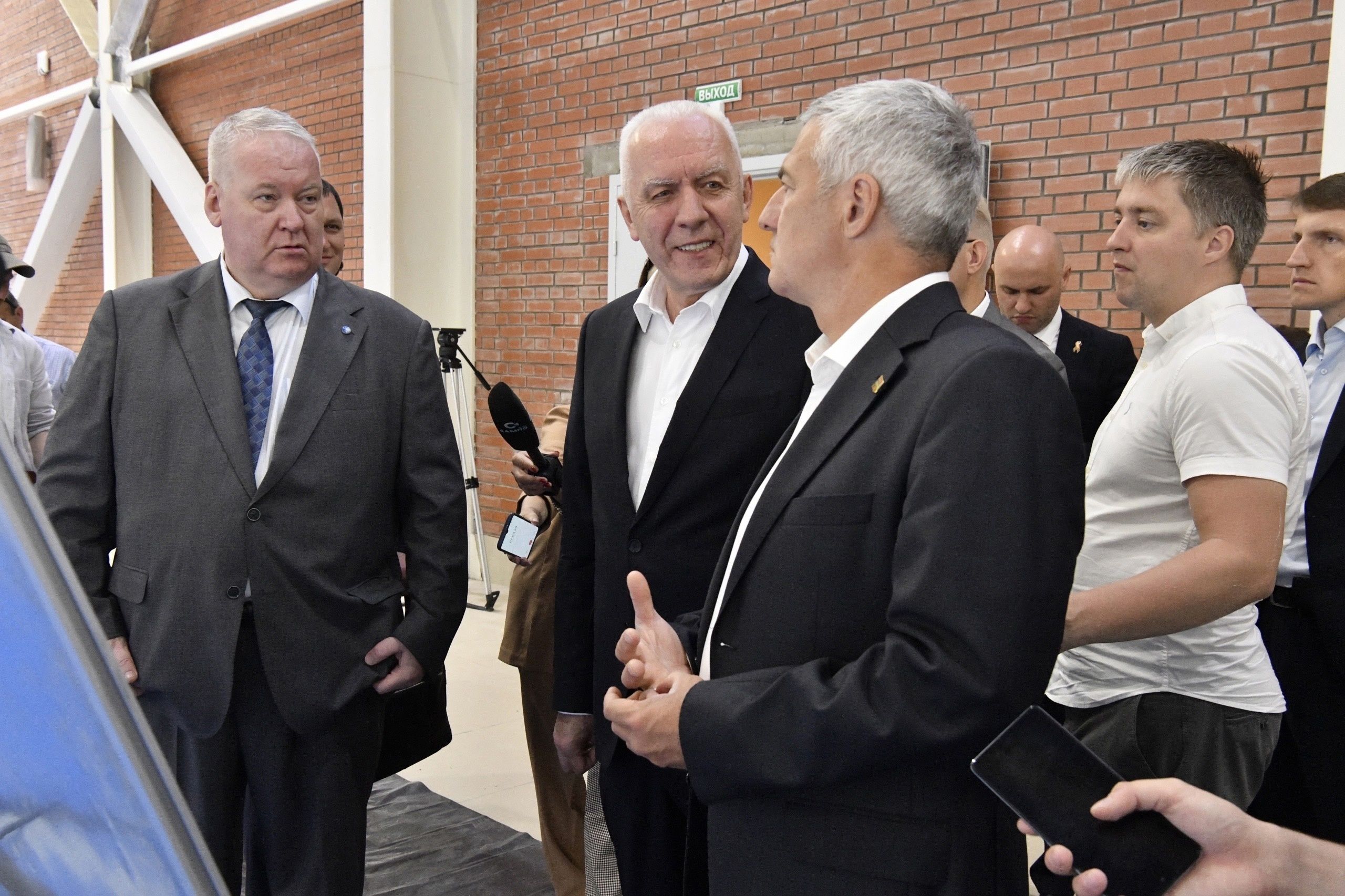 Спорткомплекс, который строится в Петрозаводске при федеральной финансовой поддержке, сегодня, 29 июня, осмотрел глава Карелии вместе с полпредом Президента Александром Гуцаном.
