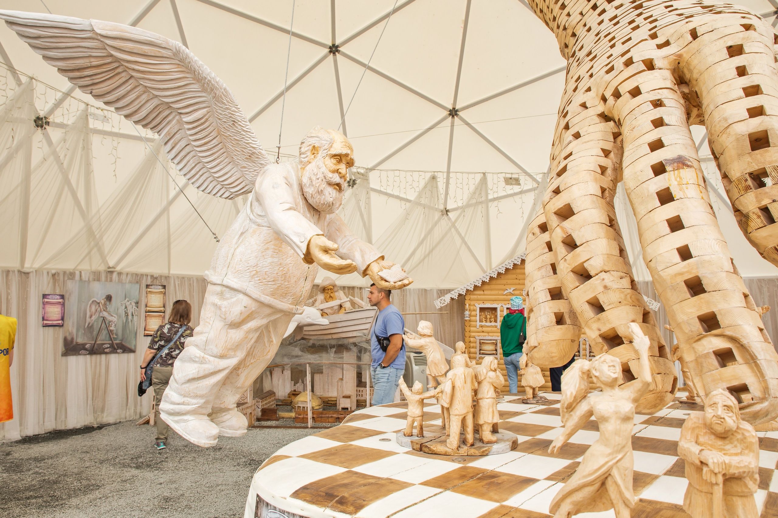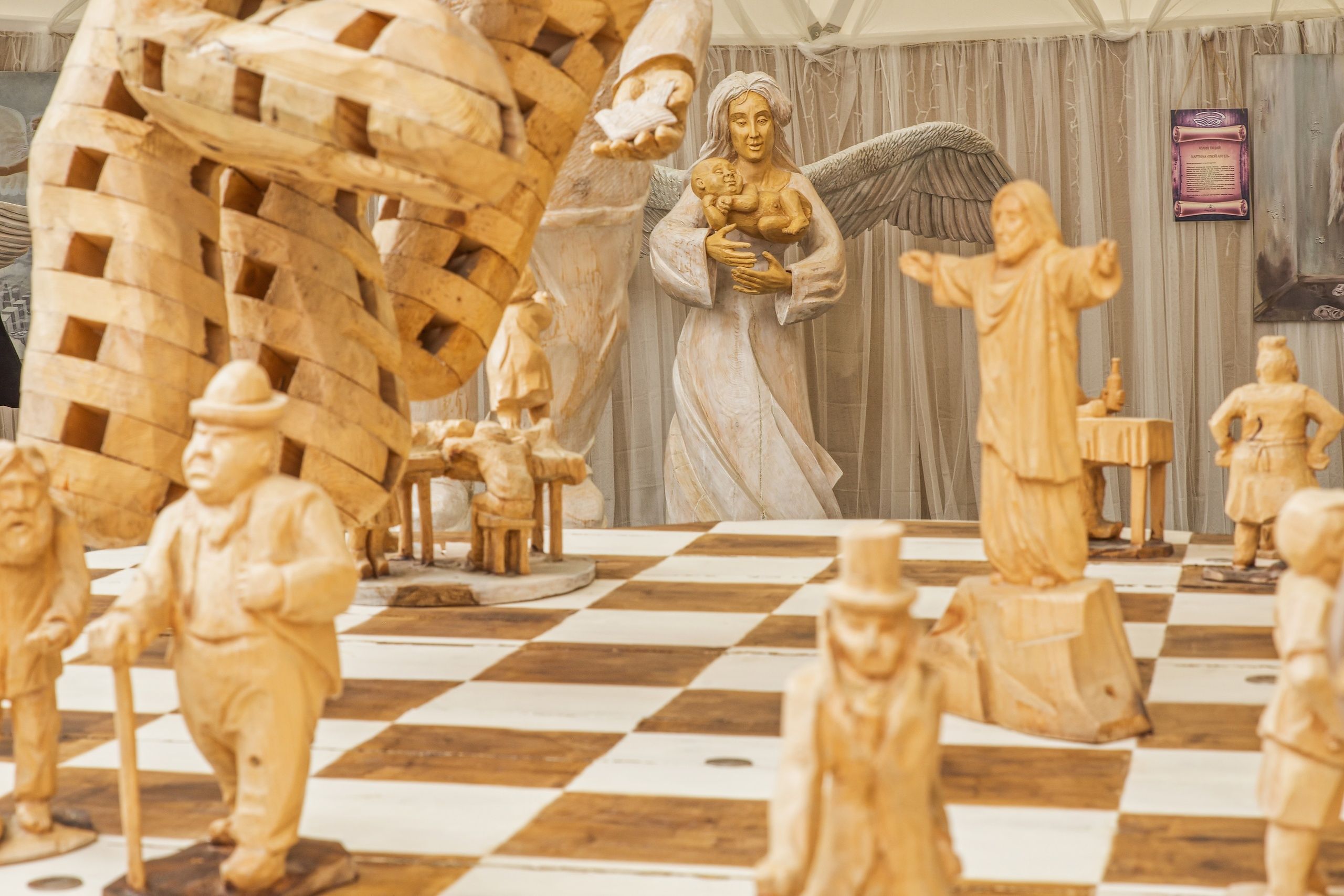 Этот музей открылся еще в 2019 году. Сейчас его знают по всей России. Техническое исполнение работ уникально и не имеет аналогов в мире. Все скульптуры на 99 процентов виртуозно выполнены бензопилой. Для доводки использовалась «болгарка» с лепестковыми дисками, микродрель и резцы.