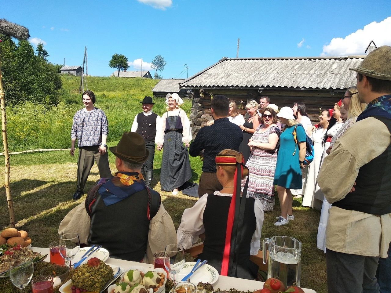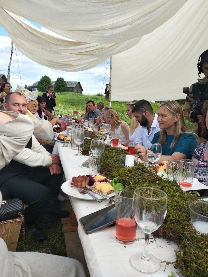 Сначала я подумала, что это артисты и снимают обряд проведения карельской свадьбы. На самом деле – это была реальная свадьба с настоящими женихом и невестой, с настоящим гостями. Молодожены решили сыграть свадьбу по старинному карельскому обычаю в костюмах, сшитых под старинный лад. Выбор места для съемок выпал на нашу деревню! – рассказала Юлия.
