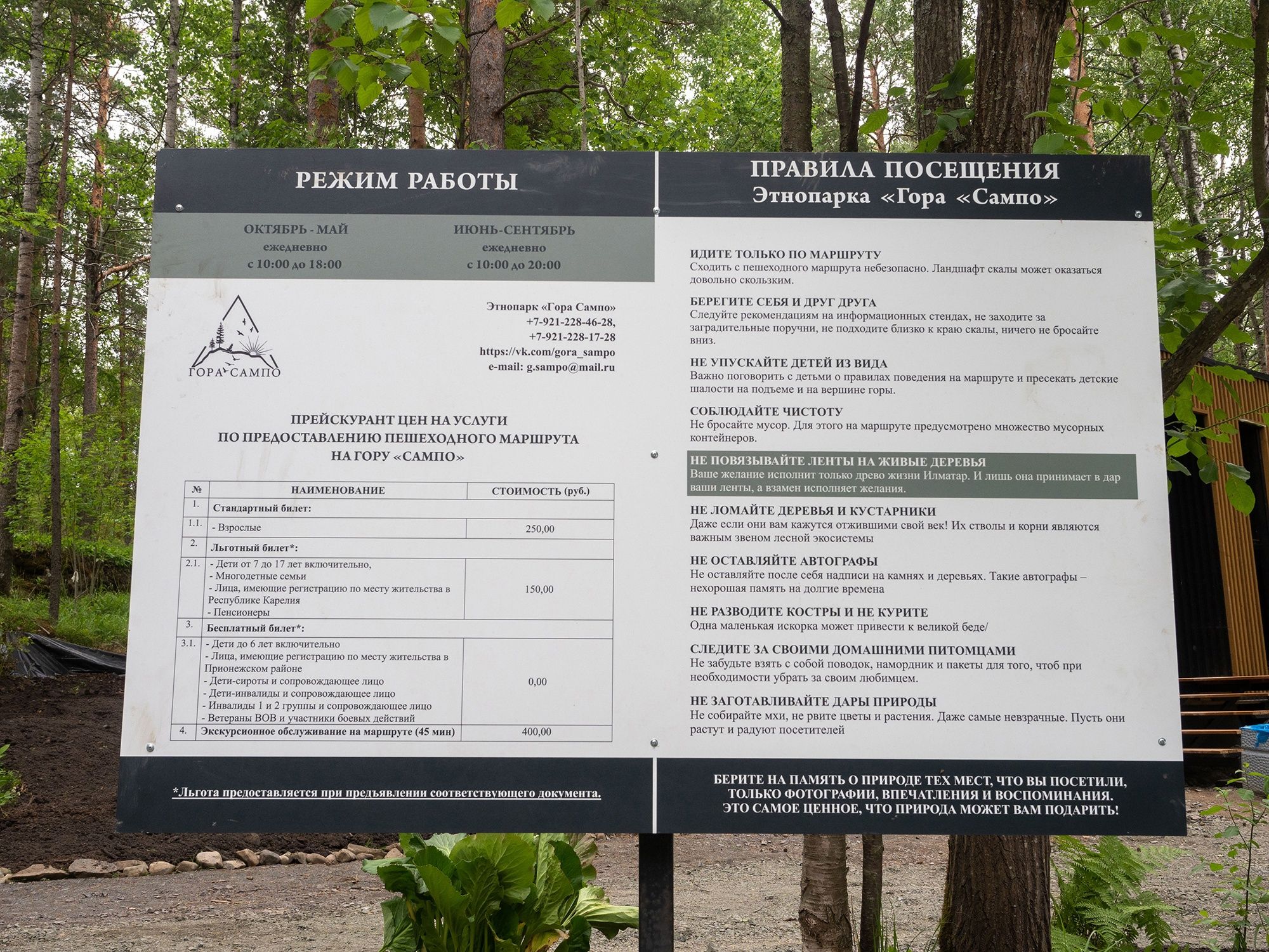 Посещение объекта платное. Жителю Карелии билет обойдется в 150 рублей, для остальных – 250 рублей. Бесплатно на гору смогут поднять зарегистрированные в Прионежье, дети до 6 лет, инвалиды I и II групп и сопровождающие их лица, ветераны ВОВ и СВО.