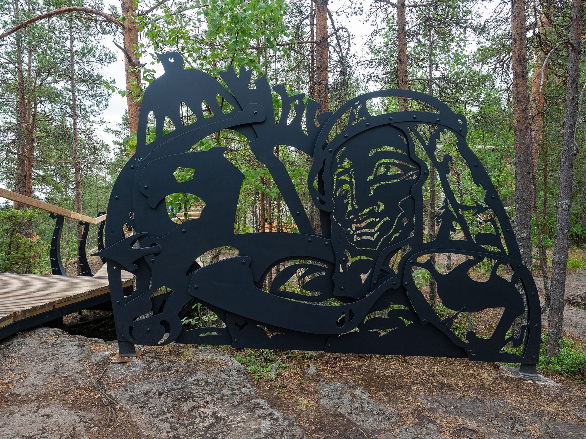 Автор идеи создания парка – жительница Кончезера Искрина Ерофеева, директор туркомпании «Ваша Карелия». Два года она вместе с партнерами получала участок в аренду, потом изнурительно проводили электричество. Потом пошел сам процесс превращения унылого места в туристическую конфетку. Художник Илья Ершов реализовал свои классные идеи, вместе с координатором проекта, строителем, кузнецом Николаем Весниным создал фигуры и образы. Создатели даже учли желание гостей привязывать ленточки на деревья. Для этого было сделано специальное дерево. В итоге получилась целая история про «Калевалу», получился классный туробъект, за который не стыдно.