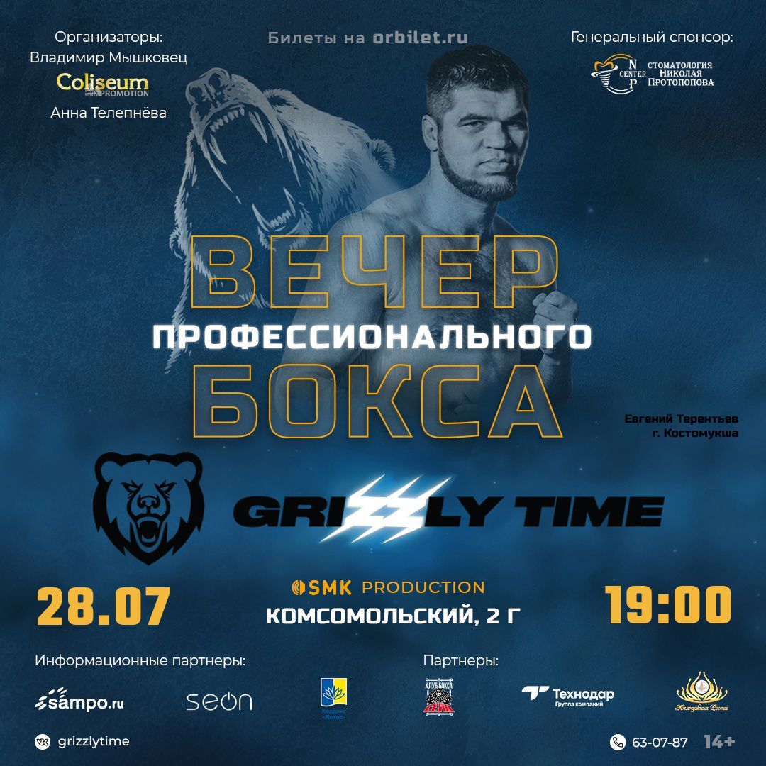 Профессиональный турнир по боксу «Grizzly Time» состоится 27-28 июля в карельской столице.