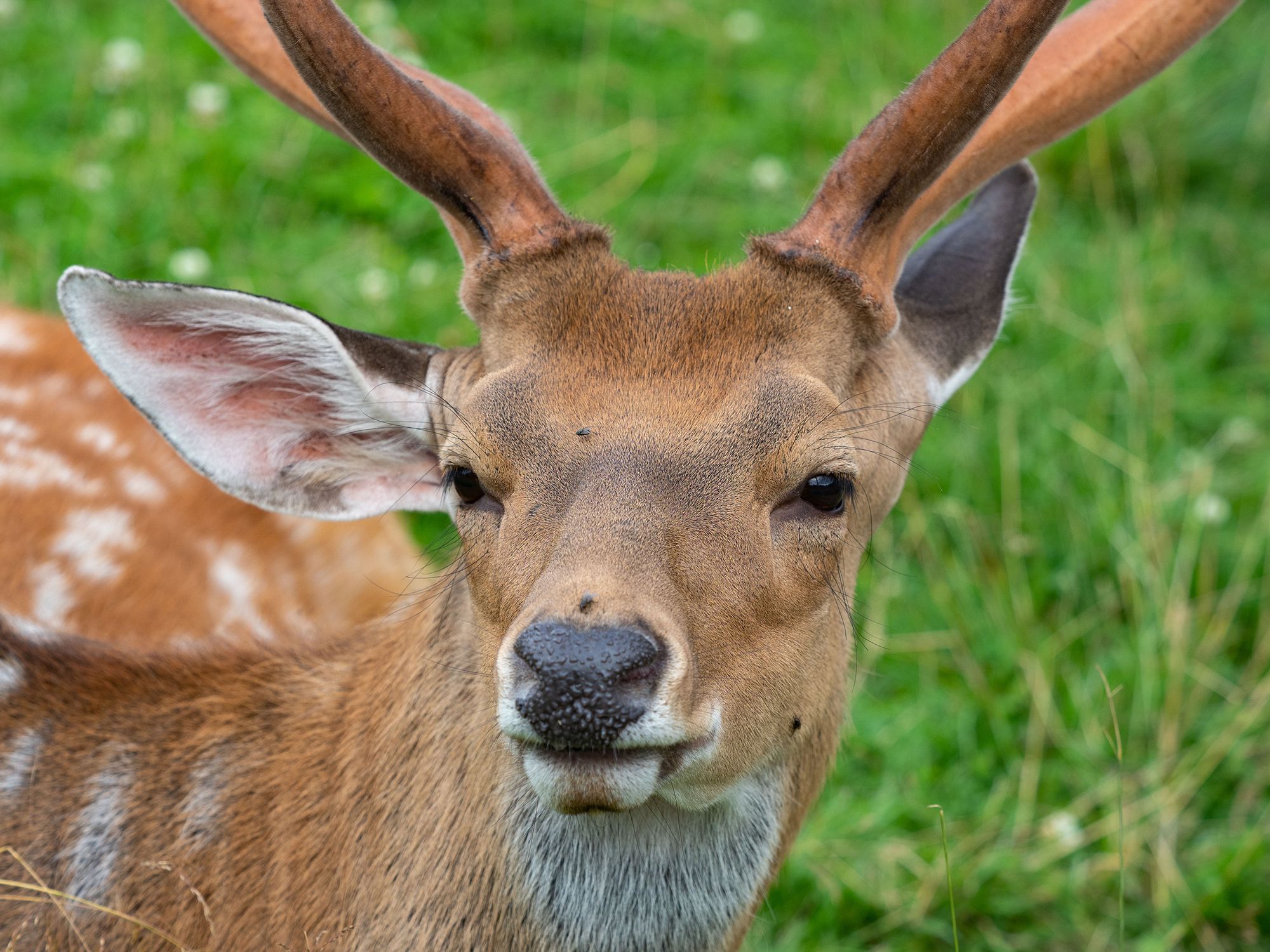 Абсолютно здоровые олени, ручные. Ничего не боятся. Как мне рассказала директор парка Марина Гизатулина, скорее всего, они были выкормлены людьми, — рассказывает Игорь Подгорный. – Я сделал снимки двух оленей. Третьего снимать не стал, чтобы не пугать людей, поскольку на рогах у него кровь, последствия небольшой травмы. Но это не страшно. Скоро раны заживут, а к осени рога станут твердыми.