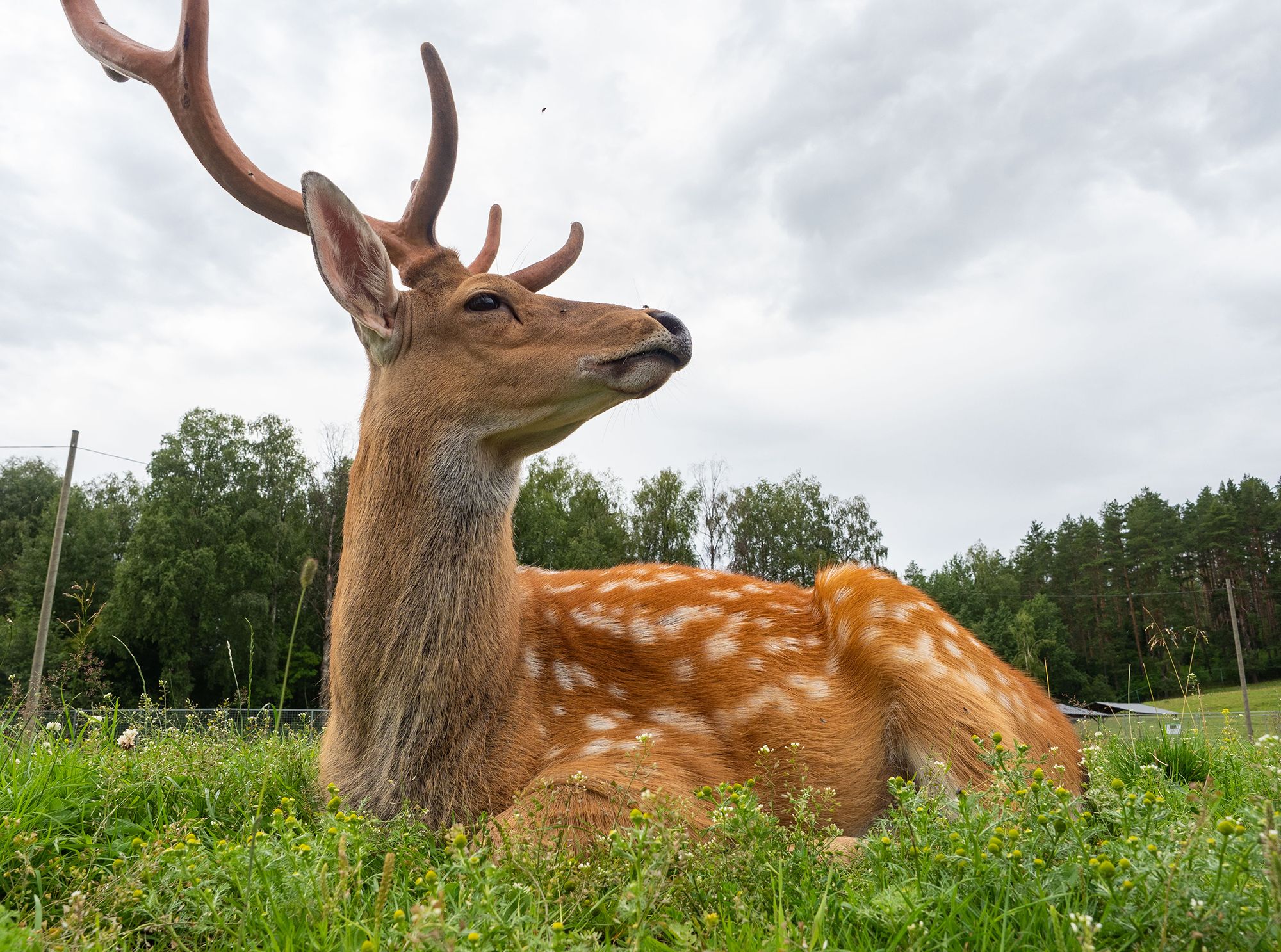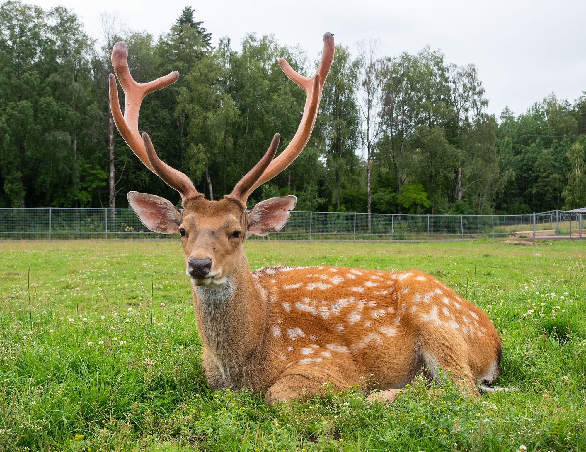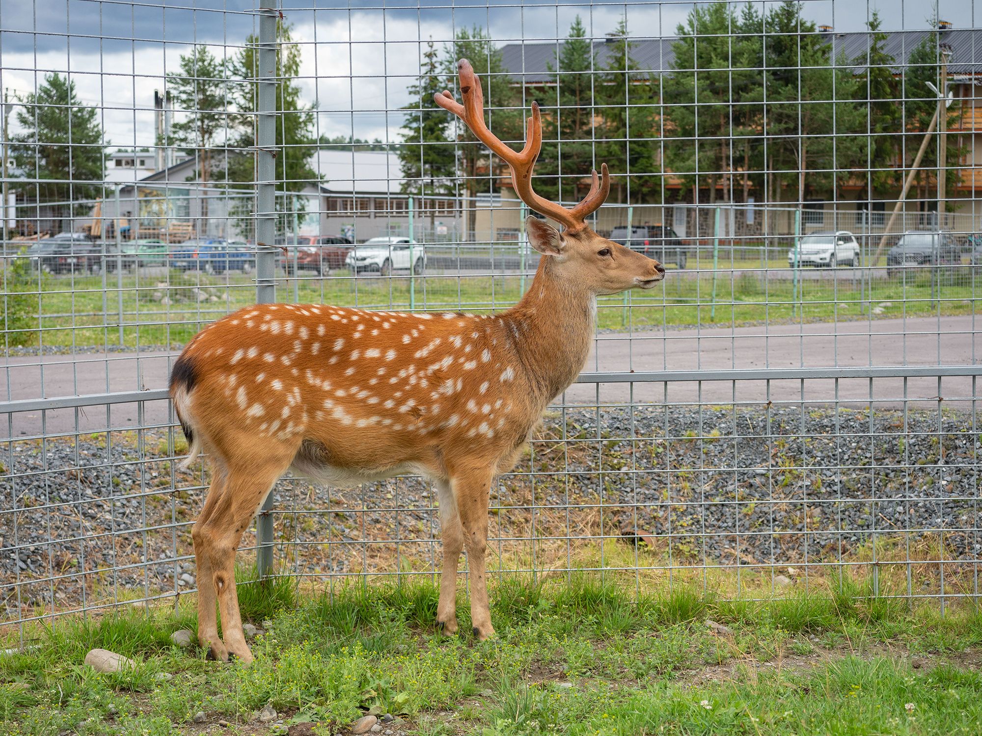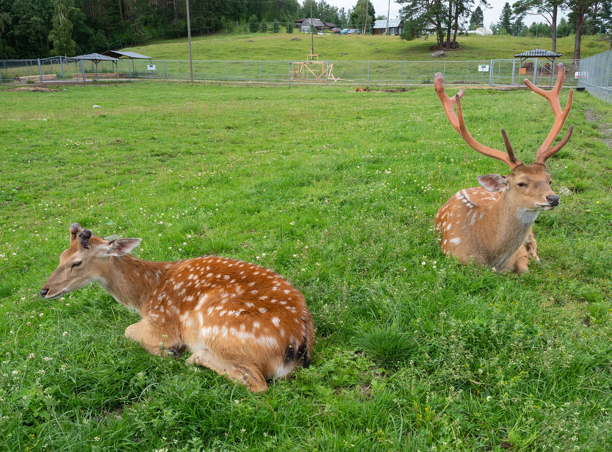 По просьбе портала «Карелия.Ньюс» фотограф Игорь Подгорный посетил привезенных из поселка Харлу краснокнижных пятнистых оленей.