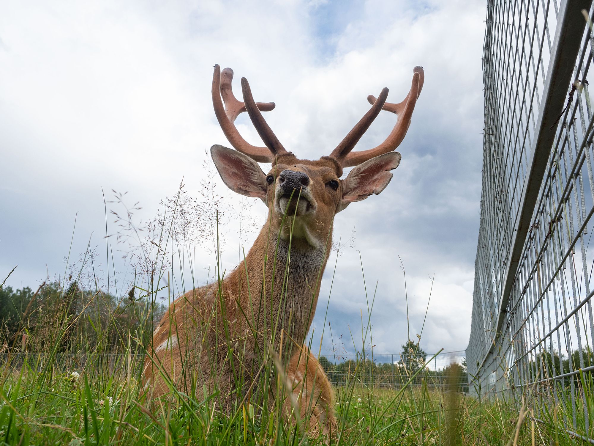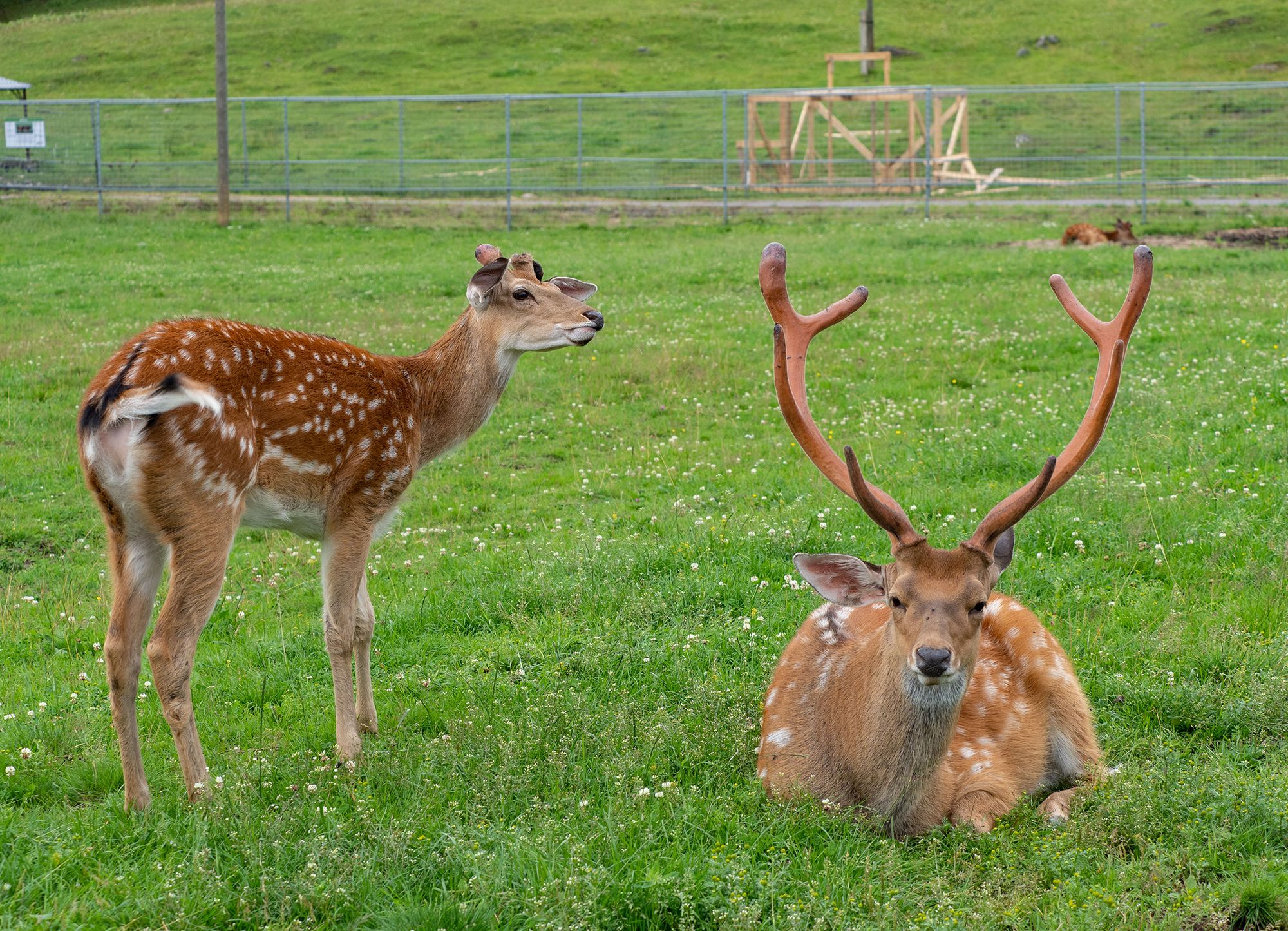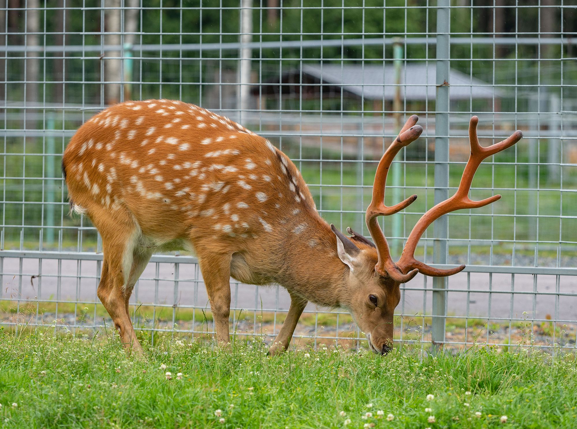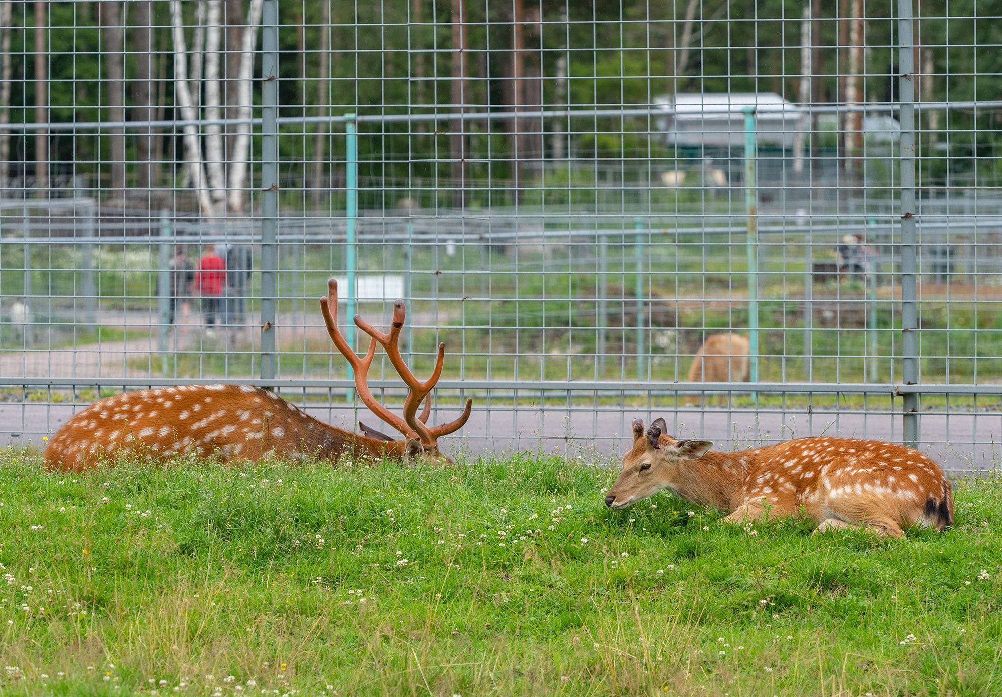 По просьбе портала «Карелия.Ньюс» фотограф Игорь Подгорный посетил привезенных из поселка Харлу краснокнижных пятнистых оленей.
