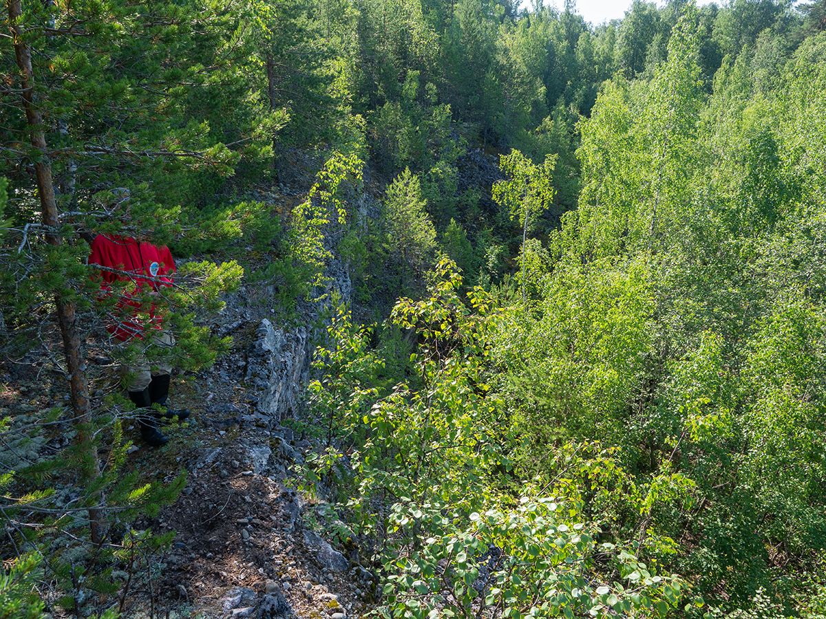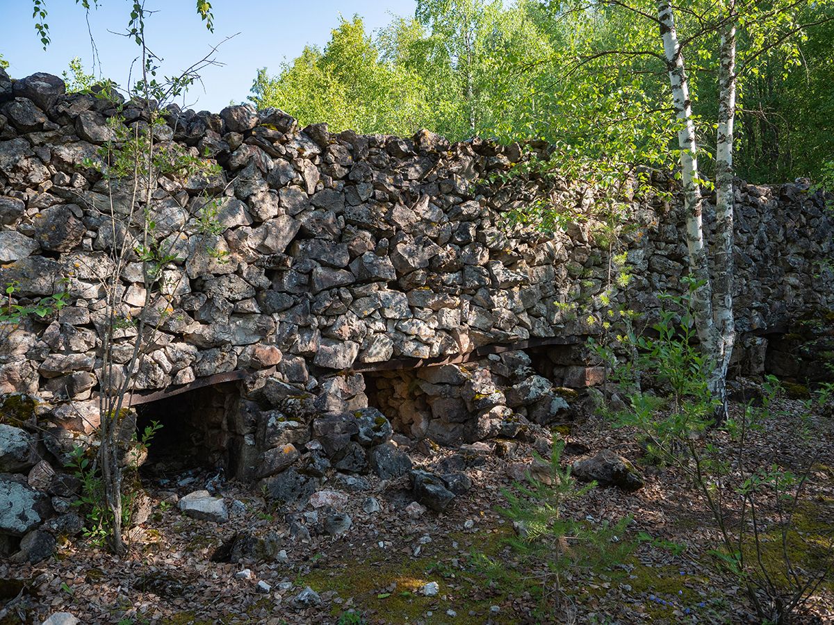 Известно, что известняк здесь начали добывать еще в ХVII веке, когда в Заонежье, в Фоймогубе, появились первые железоделательные заводы Бутенанта фон Розенбуша. Это было еще до становления завода в Петрозаводске. Известняк использовался в качестве флюса для выплавки железа, а также для изготовления самой дешевой белой краски. Предприятие существовало в разном виде до 1956 года. Здесь даже была узкоколейная железная дорога. Сейчас о заводе напоминают только руины старинных печей и штольни, куда можно провалиться, если зазеваться. А еще карьер, где когда-то кипела работа и который сейчас кишит ядовитыми гадюками.